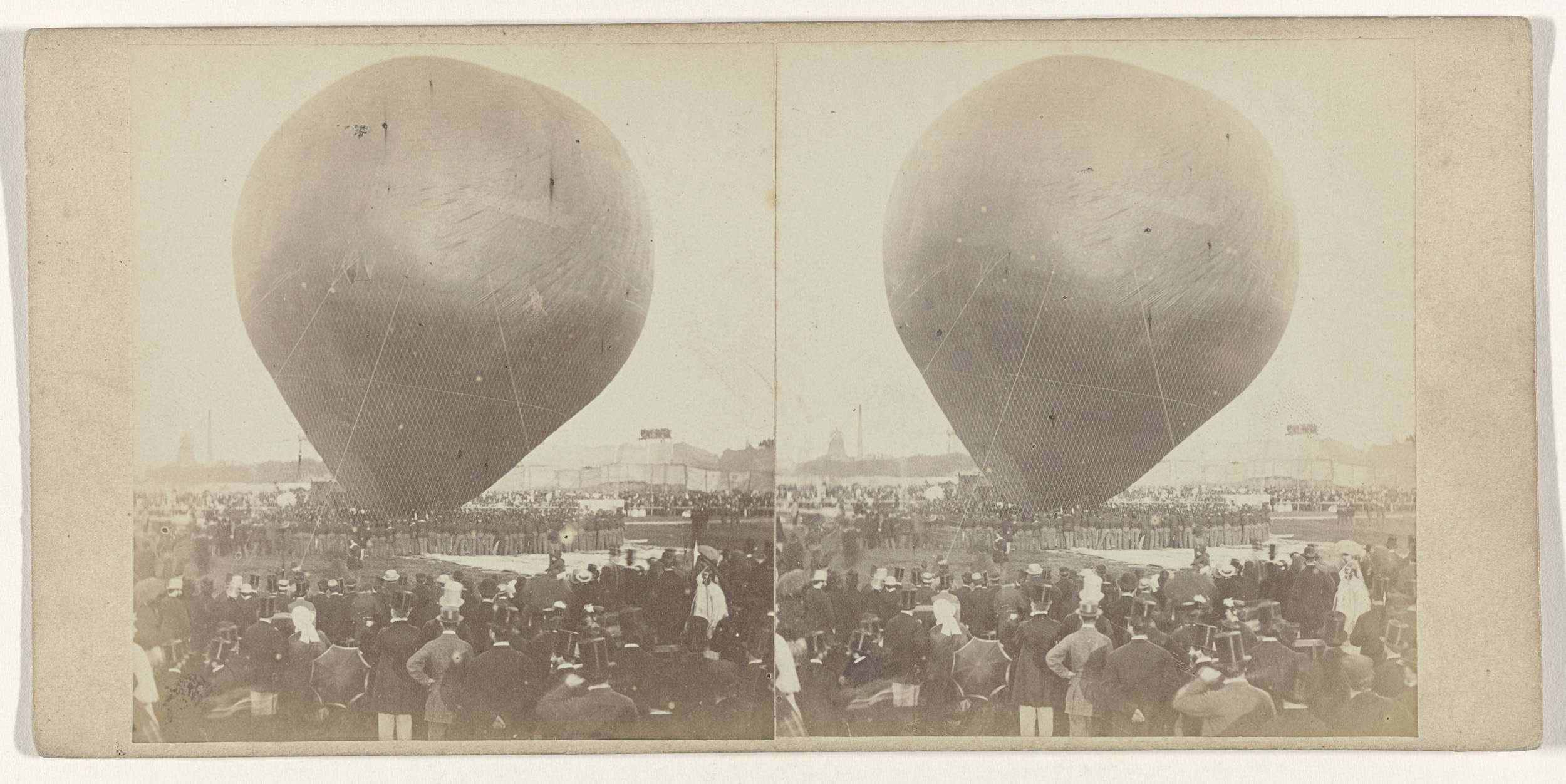 Oplating van Nadars luchtballon op een terrein buiten de Utrechtse Barrière, Amsterdam, 14 september 1865