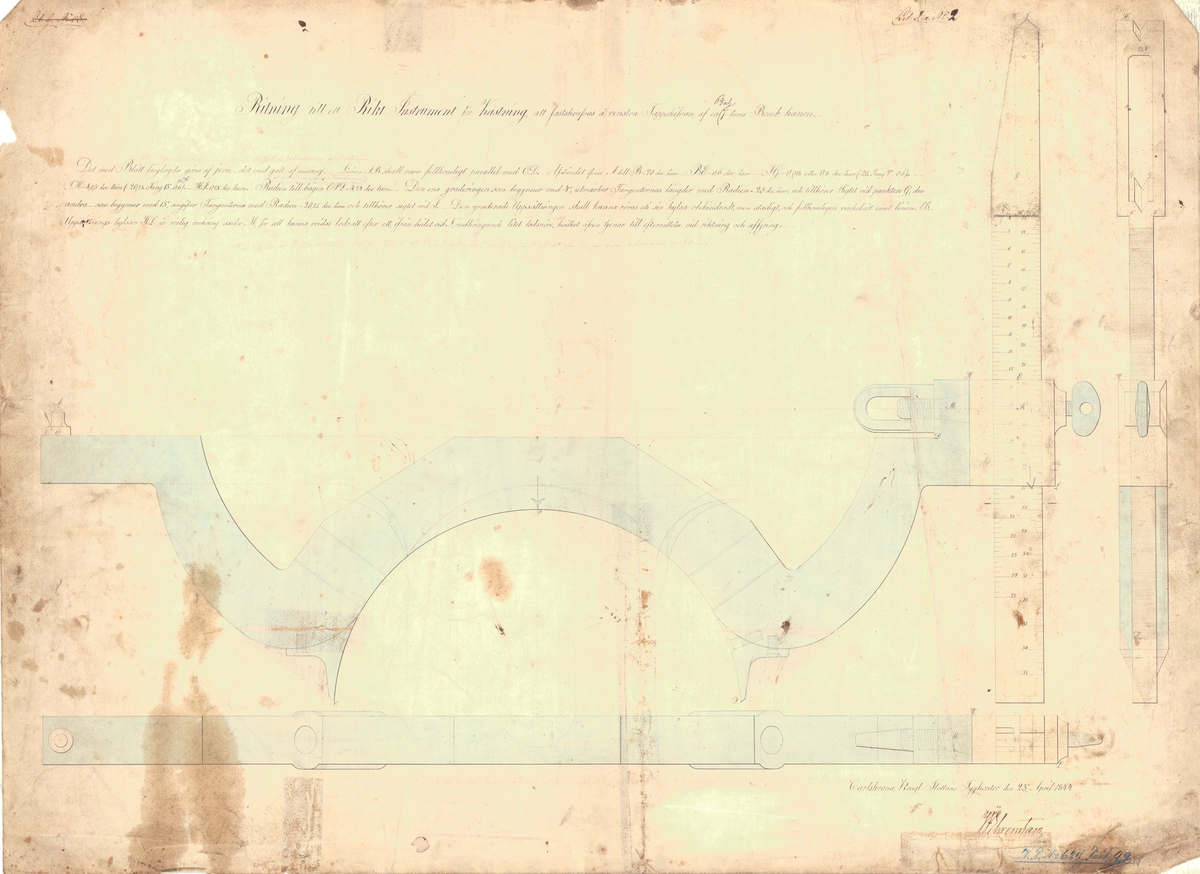 32 ft Pinnace. Scale: 1:24. Plan showing the plan and profile for a 12 pounder Carronade and slide; and the body plan, profile with inboard detail, deck plan, and stern profile for a 32 ft Pinnace as fitted with a 12 pounder Carronade in the bow, but wit