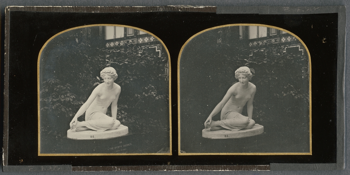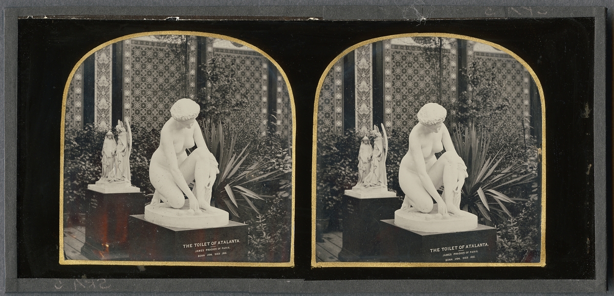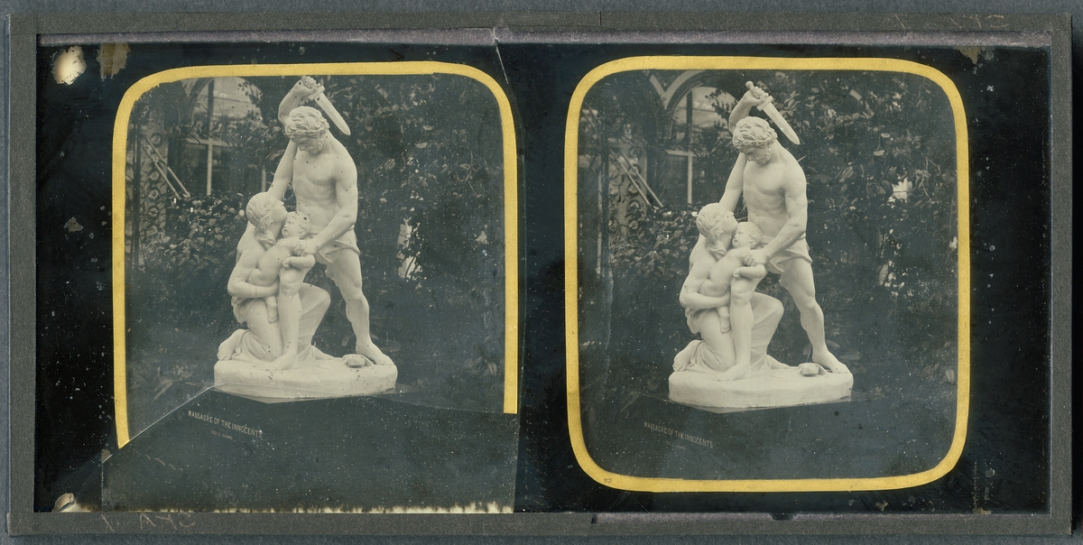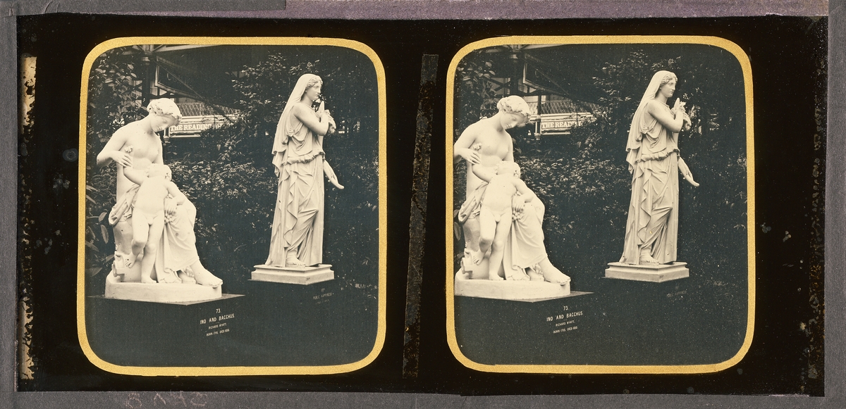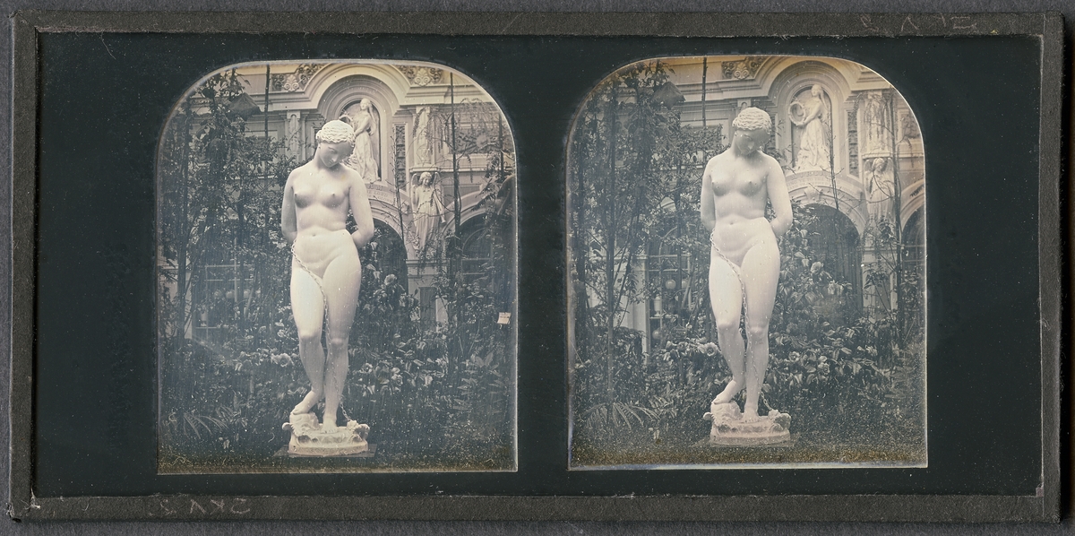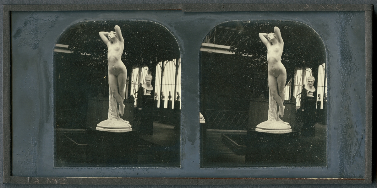 Stereoskopisk daguerreotyp med motiv av skulptur i Crystal Palace vid Världsutställningen i London efter dess flytt till Sydenham 1854 då Negretti and Zambra fick fick exklusiv rätt att fotografera utställningen.