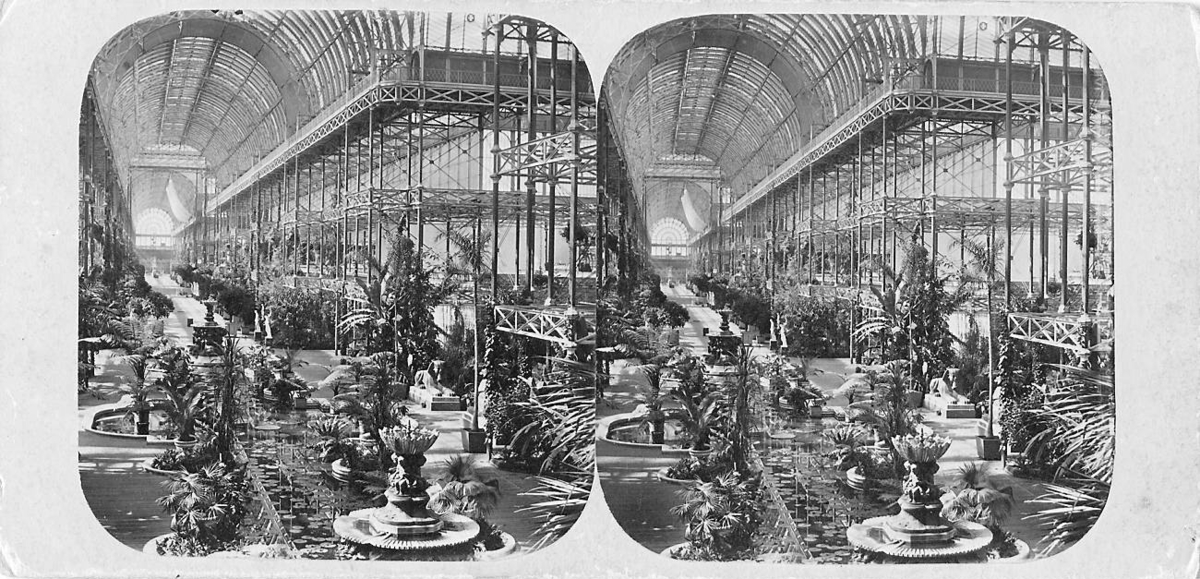 Stereobild med motiv av Kristallpalatset, Crystal Palace vid Världsutställningen i London 1851.