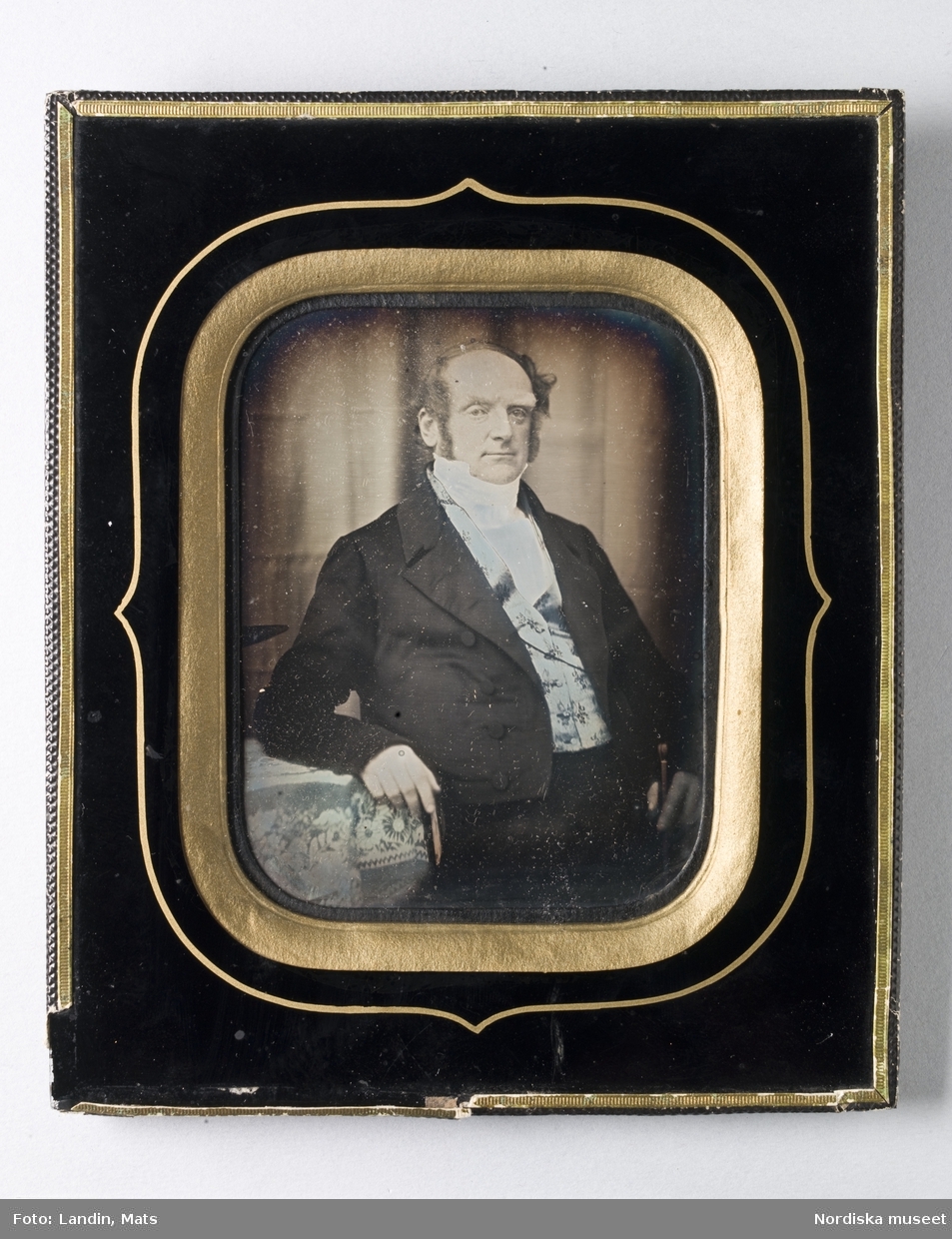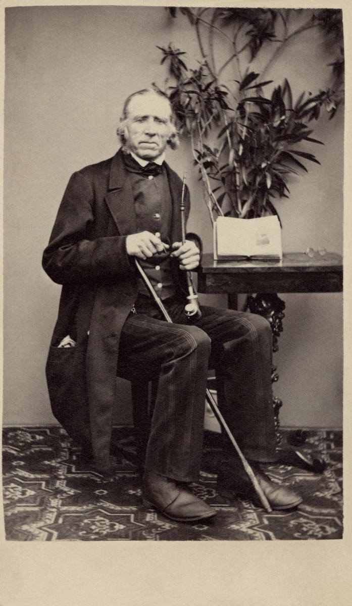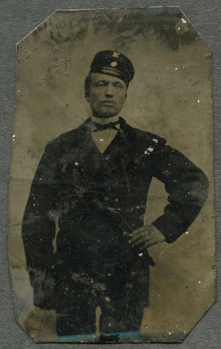 Ferrotyp. Porträtt i helfigur av herr Persson från Höganäs stenkolsgruvor.