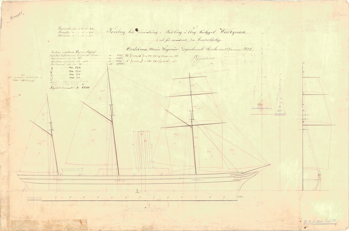 34 ft Admiral's Barge. Scale: 1:16. Plan showing the body plan, sheer lines with inboard detail, and longitudinal half-breadth for a proposed 12? oared, 34 ft Admiral's Barge. Signed B. Robinson [Master Shipwright/Chief Constructor, Portsmouth