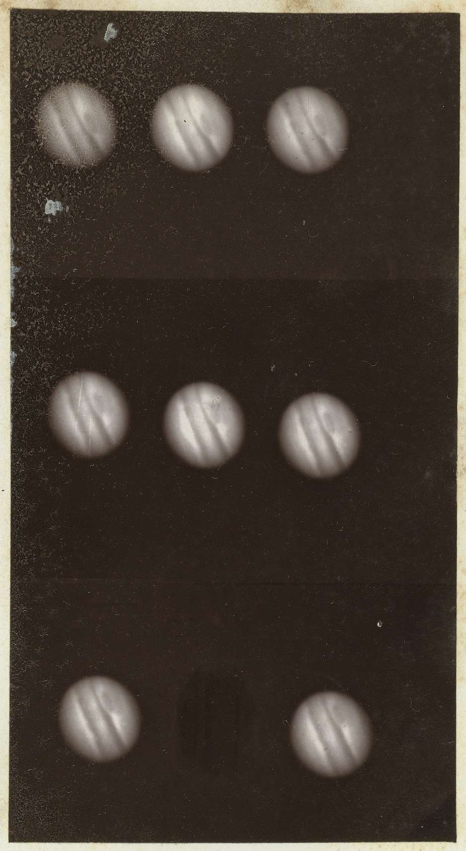 Jupiter, prises entre 10h16m et 11h8m, le 21 Avril 1886, et montrant le mouvement de rotation de la tache rouge