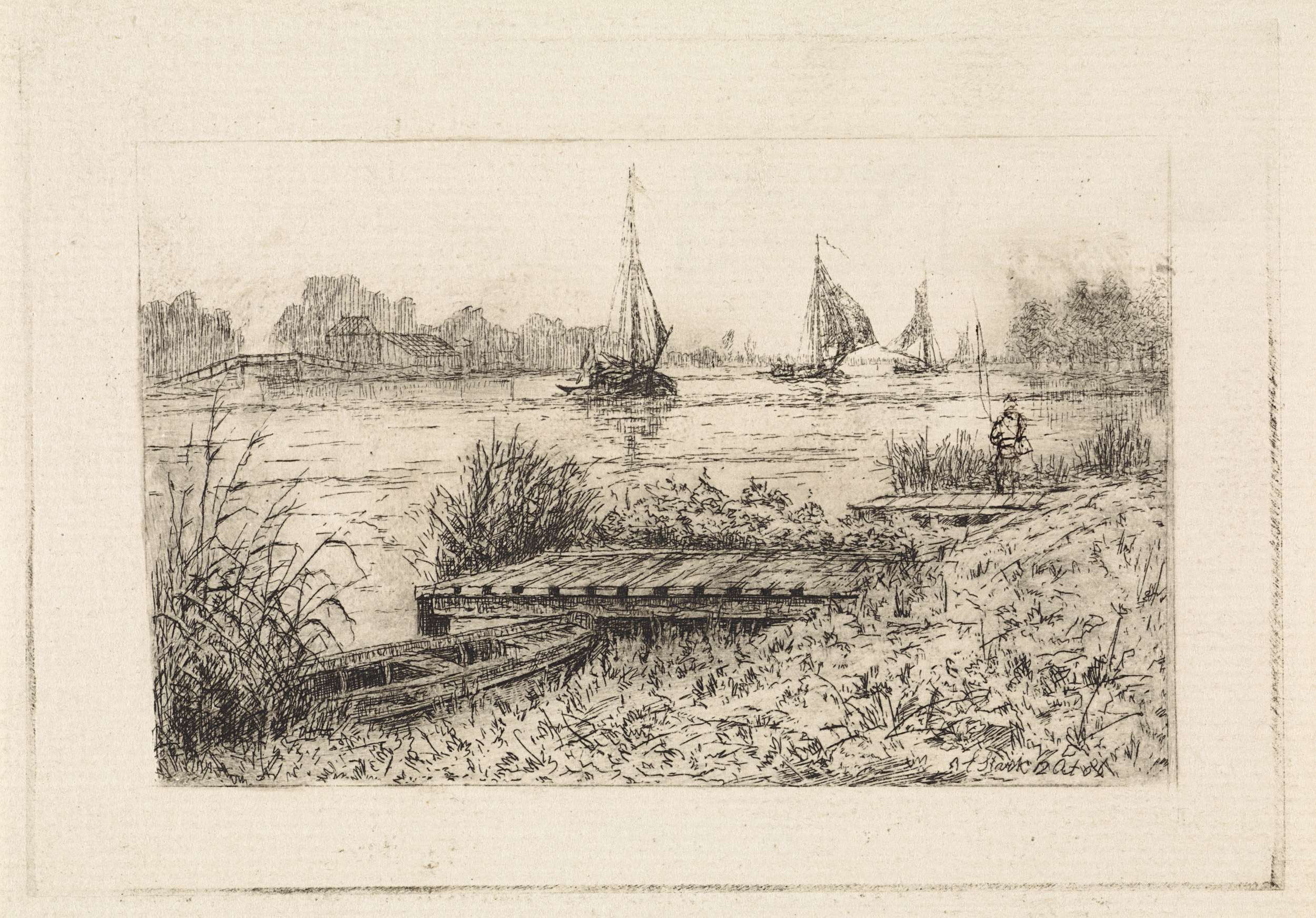 Potloodtekening vanaf de Martinetsingel met Gezicht op de Sint Walburgiskerk te Zutphen, september 1886. (De torenspits ontbreekt).