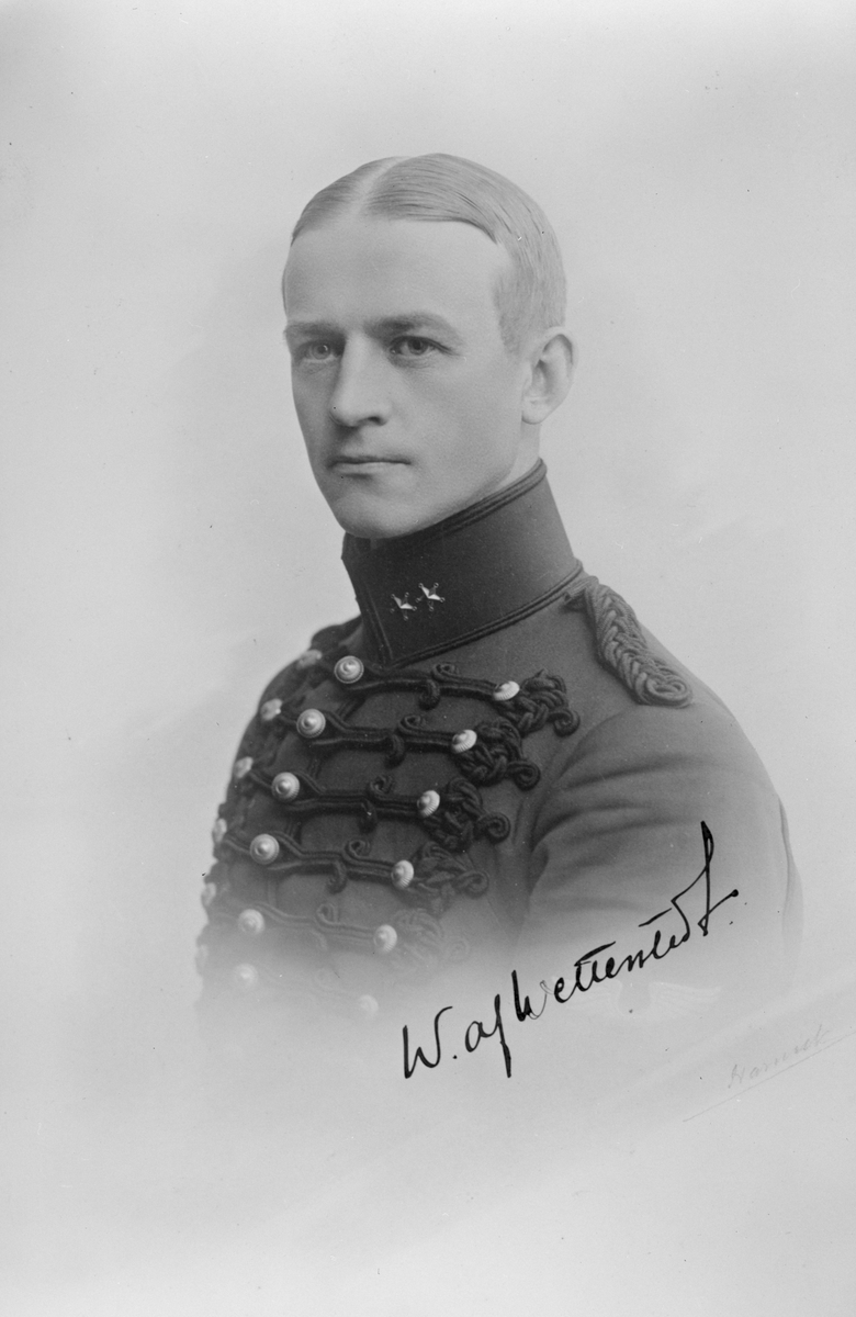 Porträtt av militära flygpionjären W. af Wetterstedt, från Norrlands artilleriregemente. Porträttet är signerat av Wetterstedt.