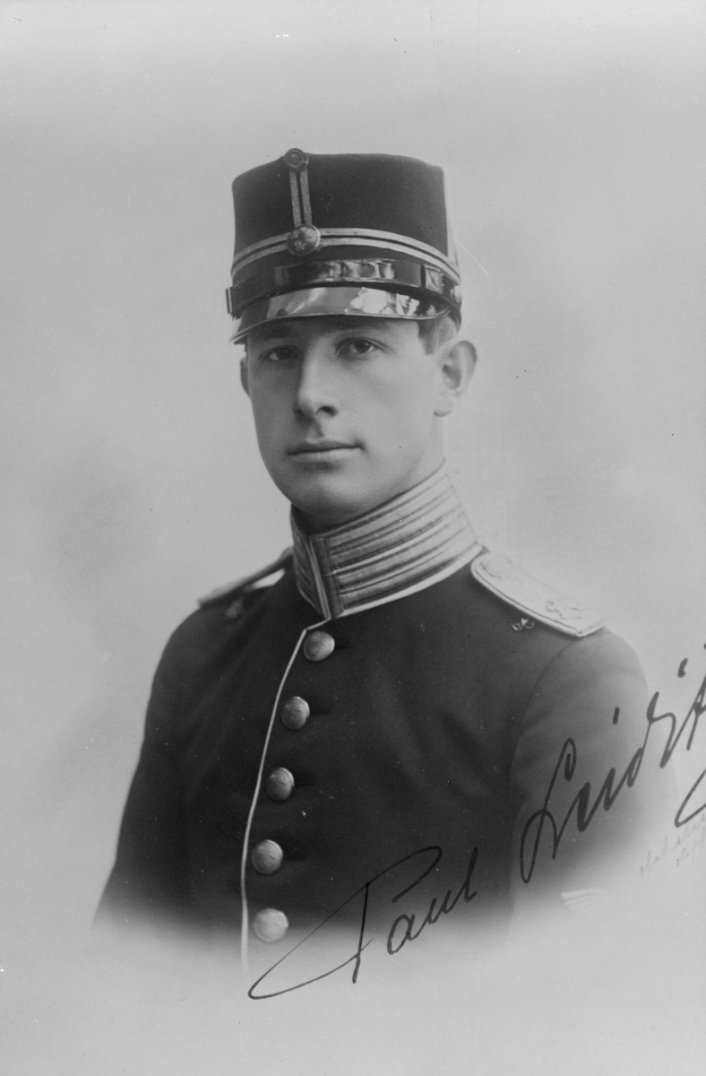 Porträtt av militära flygpionjären Paul Leiditz från Livregementets grenadjärer. Porträttet är signerat av Leiditz.