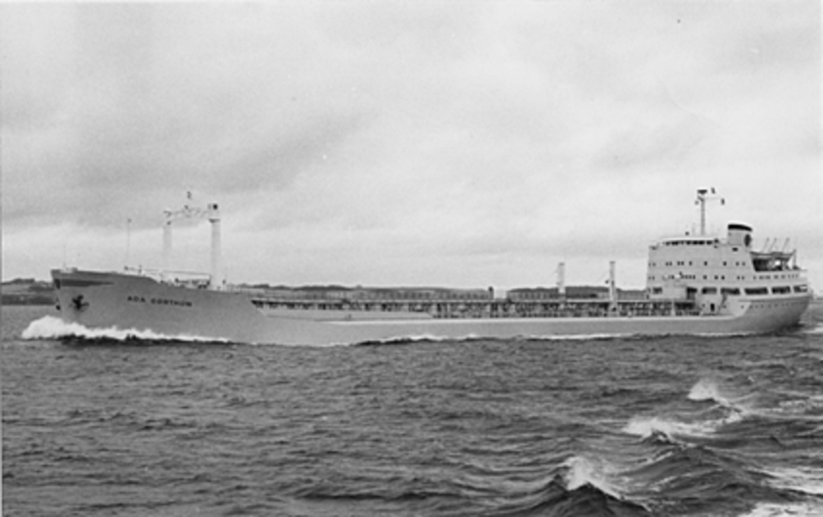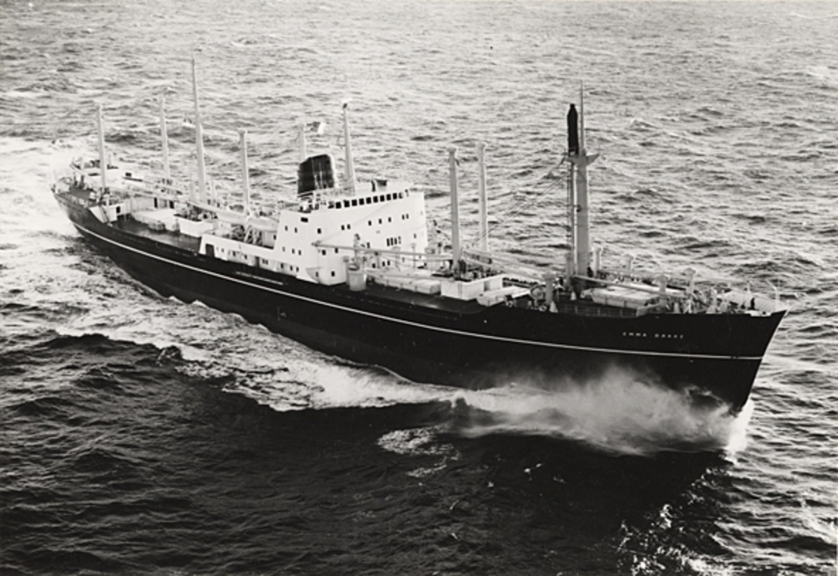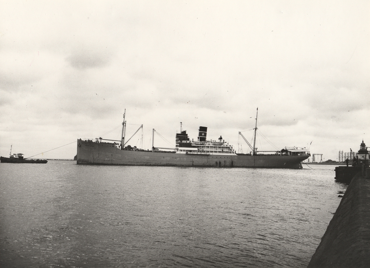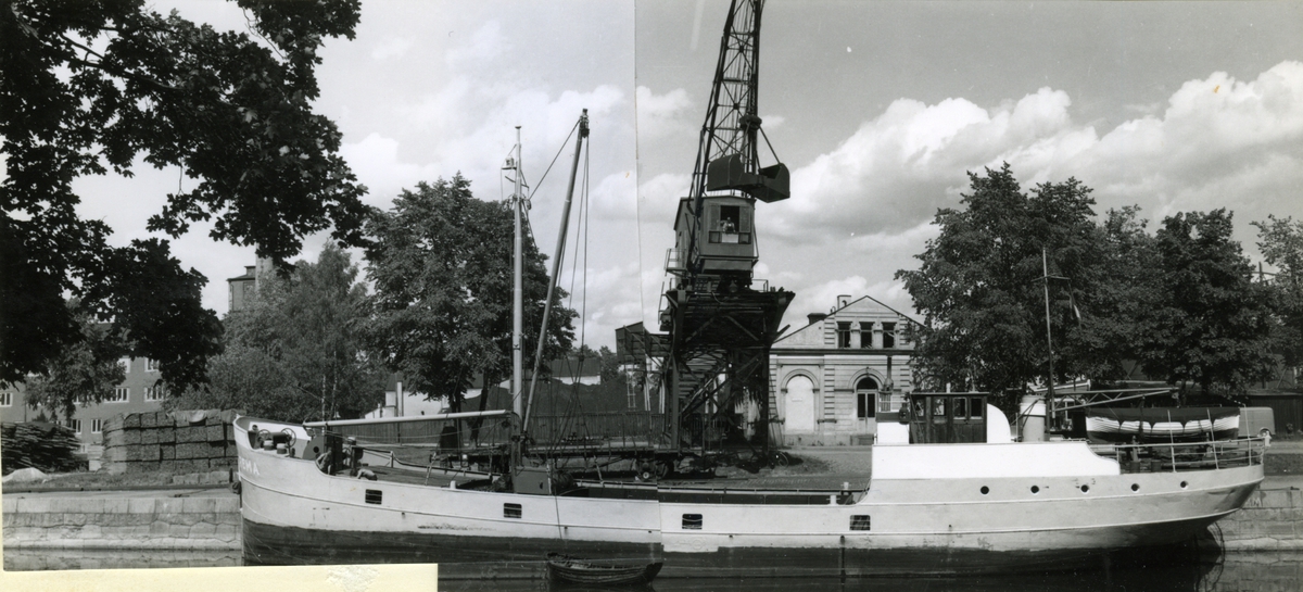 Foto i svartvitt visande lastmotorfartyget "SELMA THORDÉN" taget i Köpenhamn under augusti månad 1962.