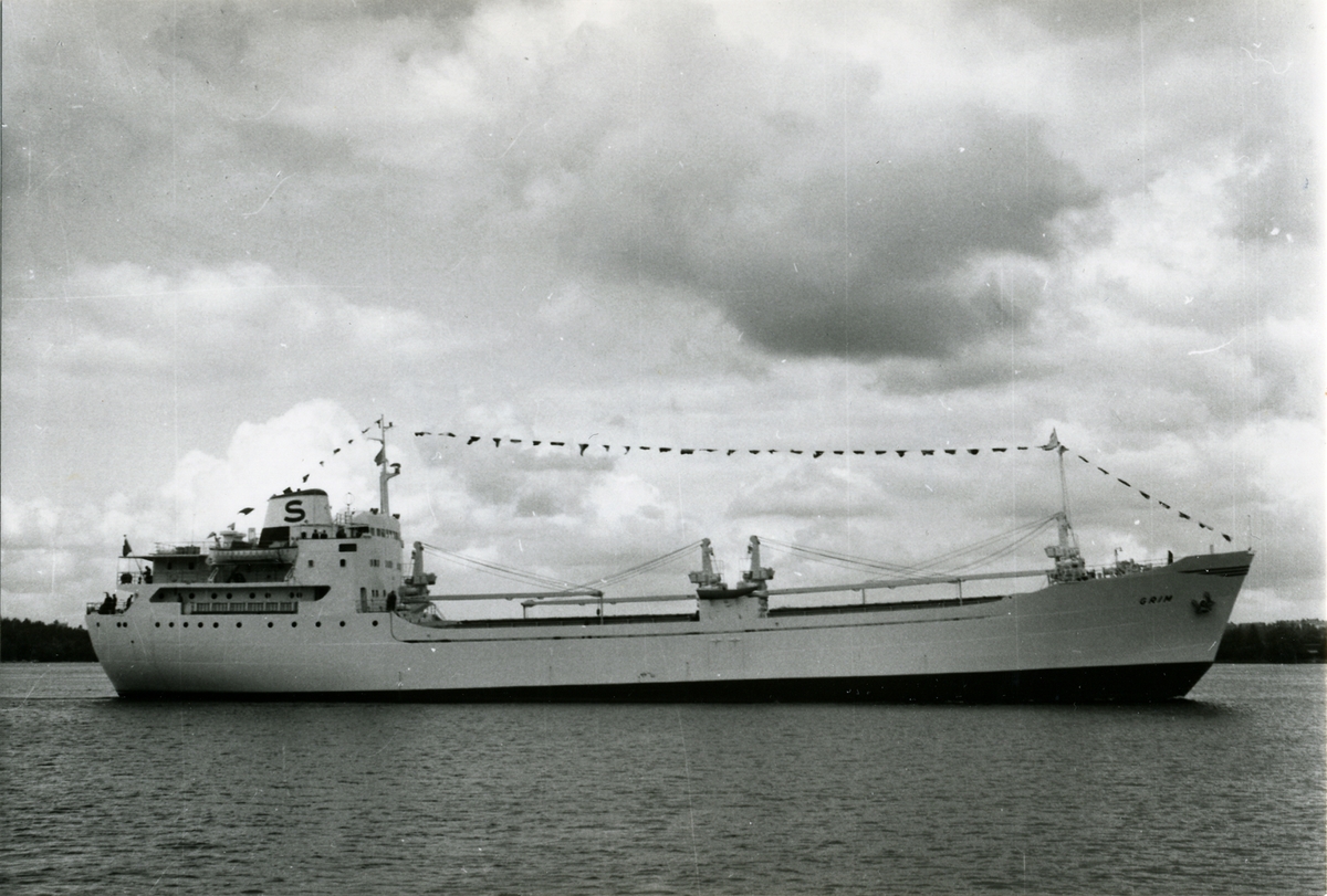 Foto i svartvitt visande lastmotorfartyget "MARGARET JOHNSON" taget i Köpenhamn under februari månad 1962.