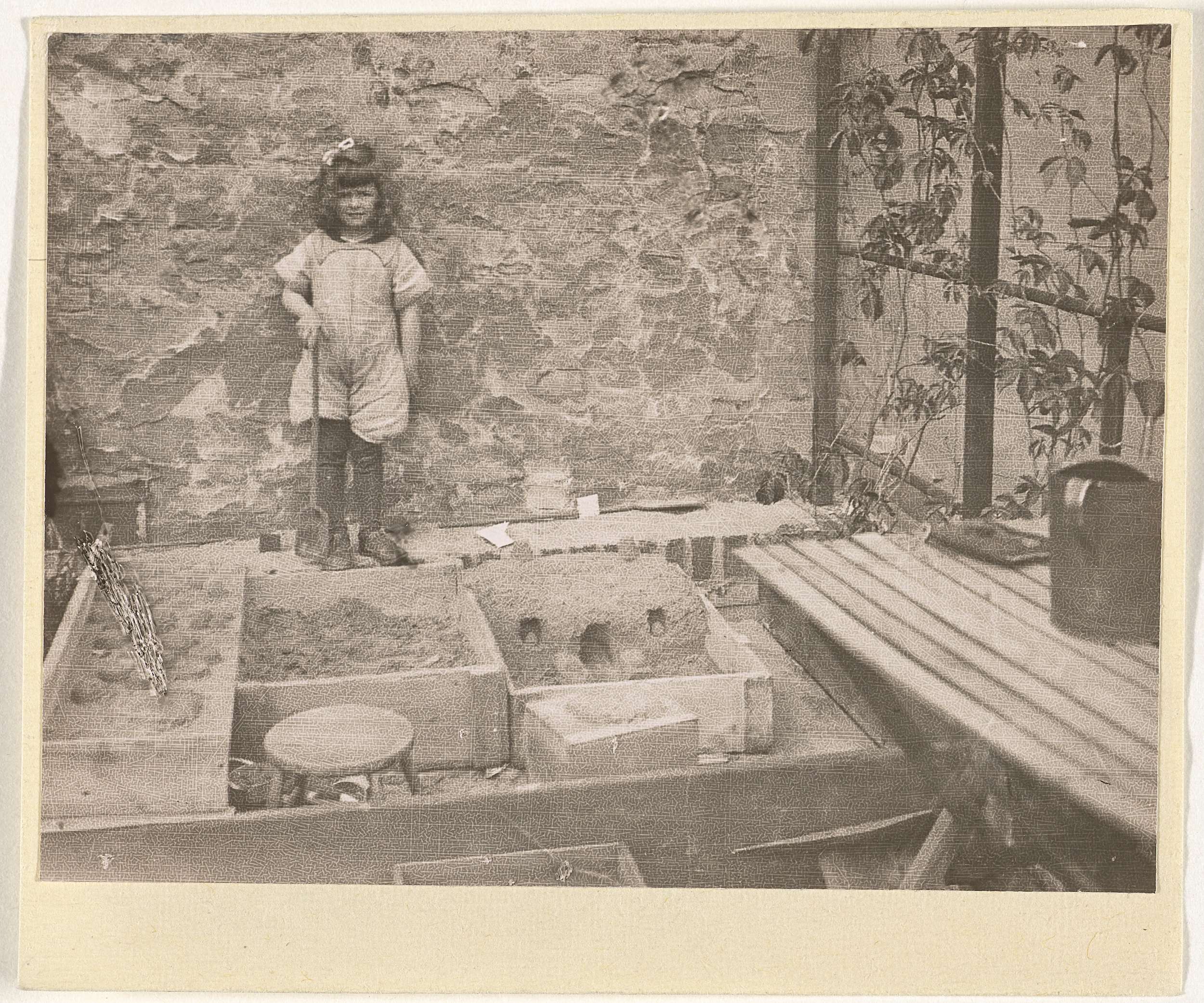 Marba Titzenthaler, dochter van de fotograaf, op het dakterras van het woonhuis Friedrichstrasse, Berlijn
