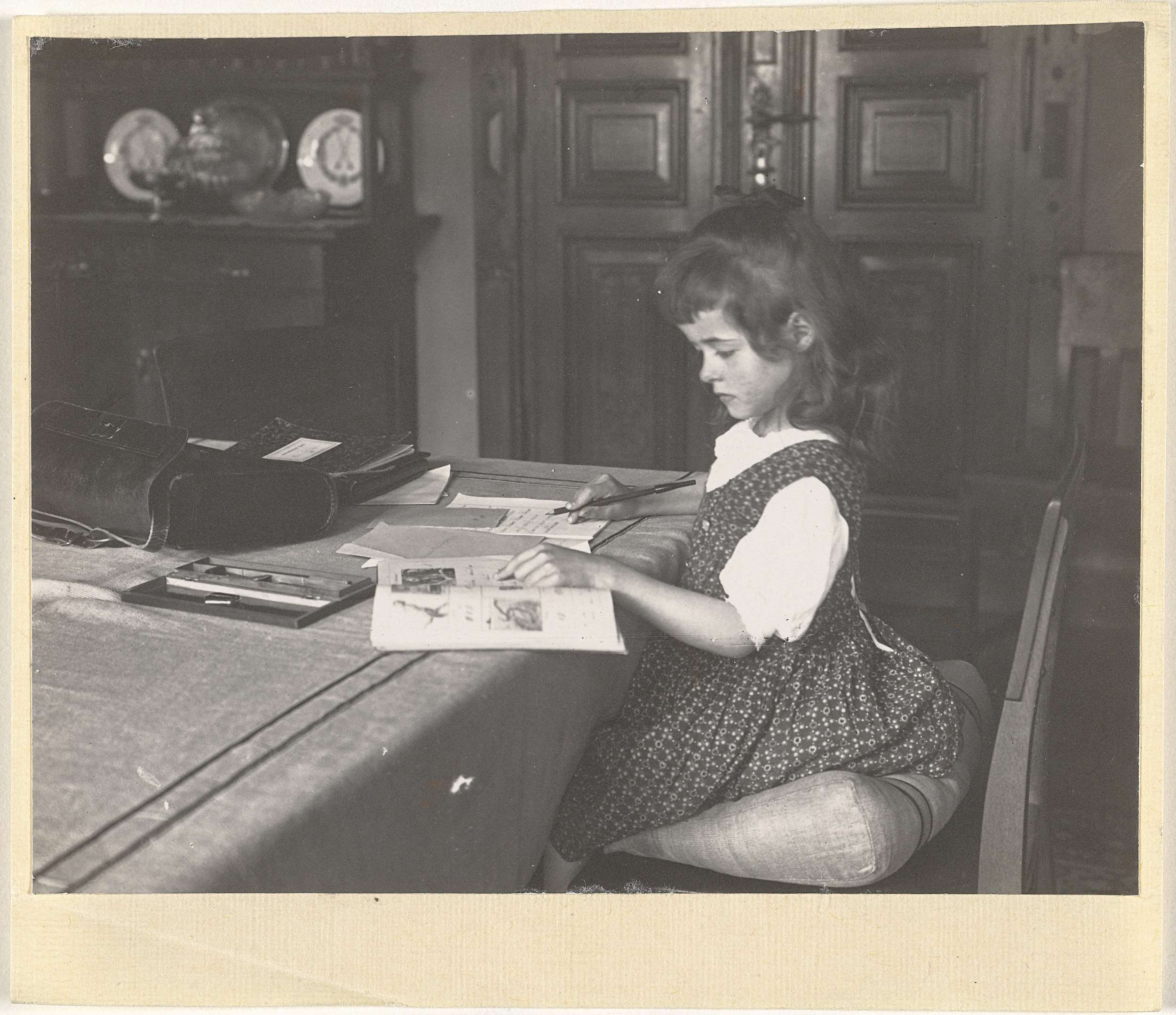 Marba Titzenthaler, dochter van de fotograaf, in het woonhuis Friedrichstrasse, Berlijn