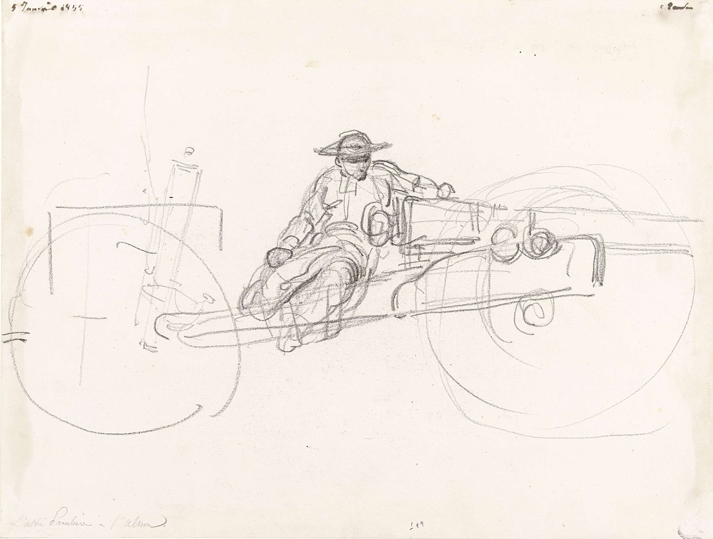 Schets uit de Krimoorlog: de abbé Parabère gezeten op het affuit van een kanon