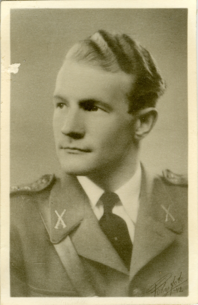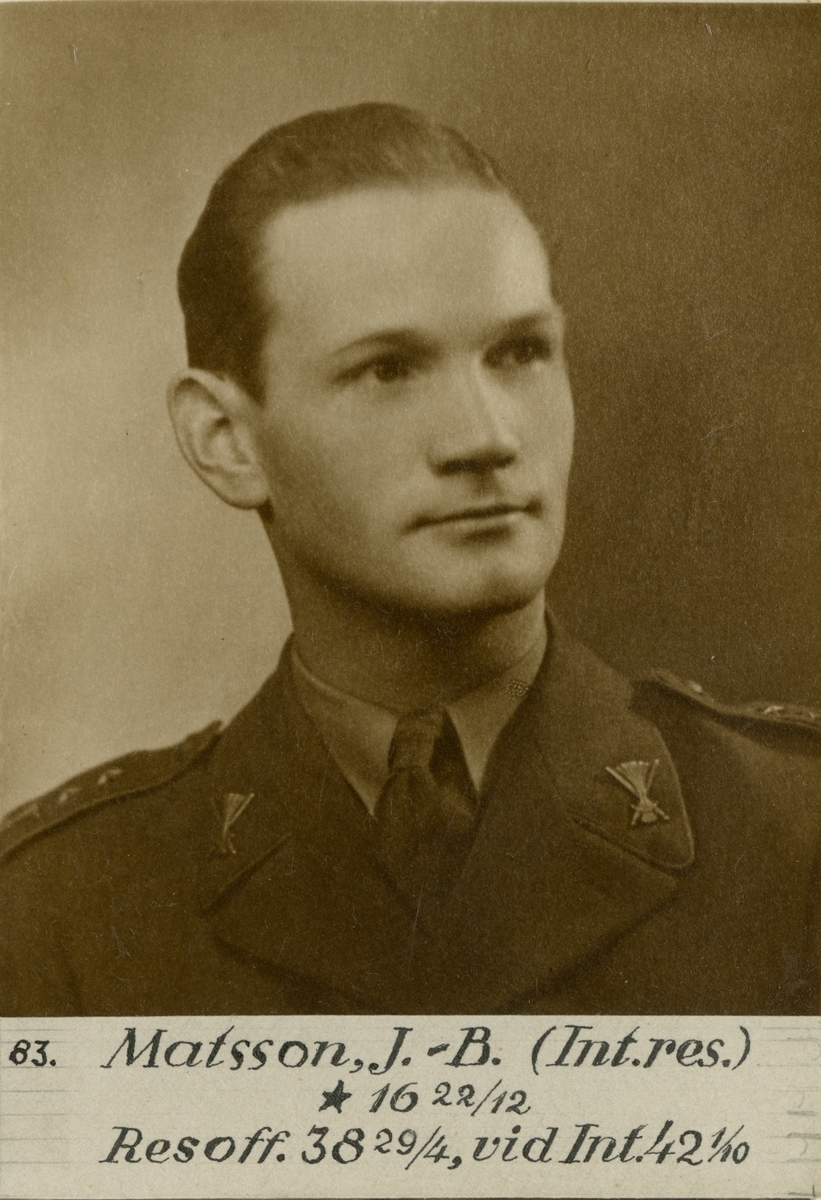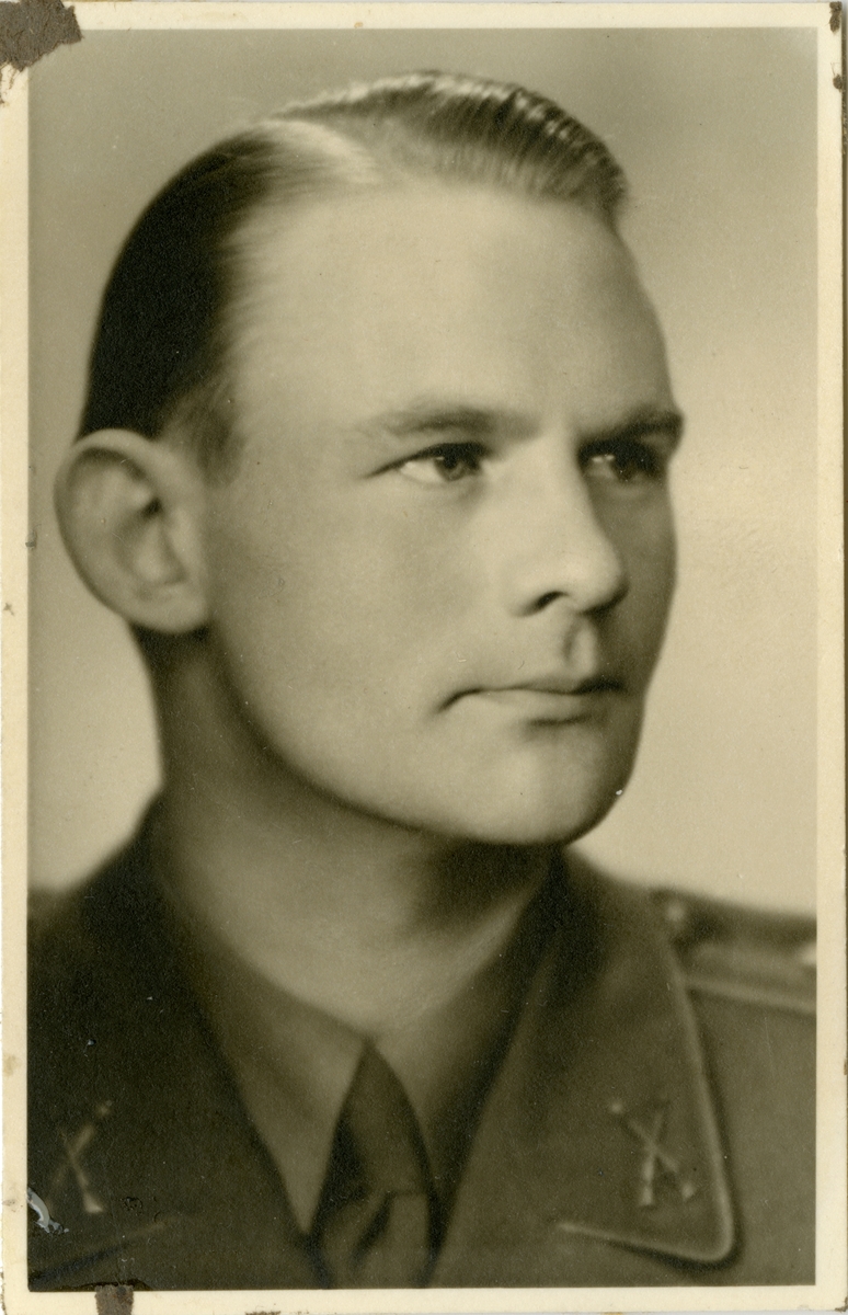 Porträtt av Johan-Bertil Matsson, löjtnant vid Intendenturkåren.