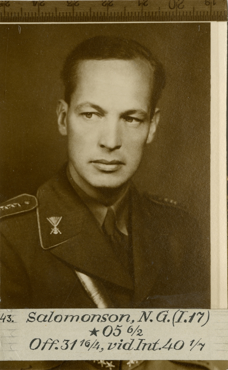 Porträtt av Nils Gösta Salomonson, officer vid Göta livgarde I 2 och Intendenturkåren.