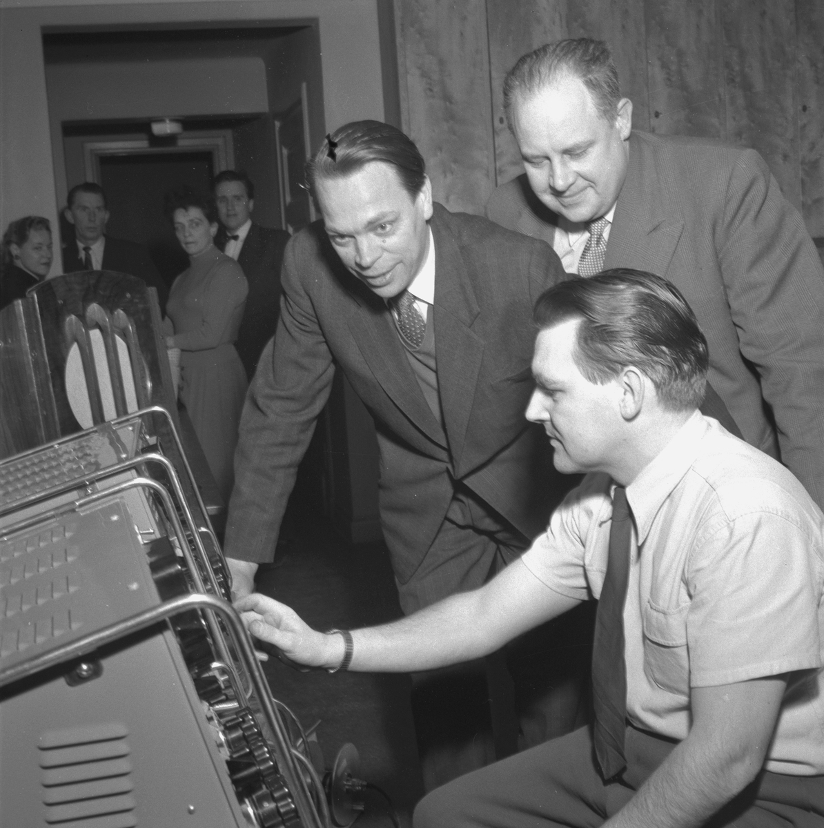 Dop och sjösättning av fartyget 154 M/S Karin Thordén.Fartygets gudmor på tribunen.