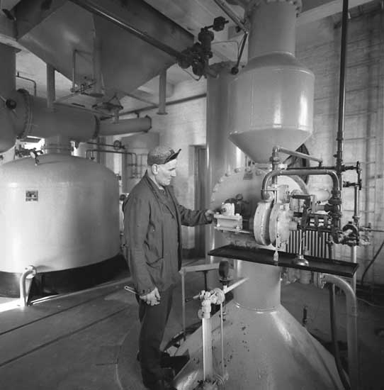 Örnstedt från Tekniska Museet på besök i smedjan för att tillsammans med intendenten B Nilsson förbereda TMV:s besök den 22 april 1967.