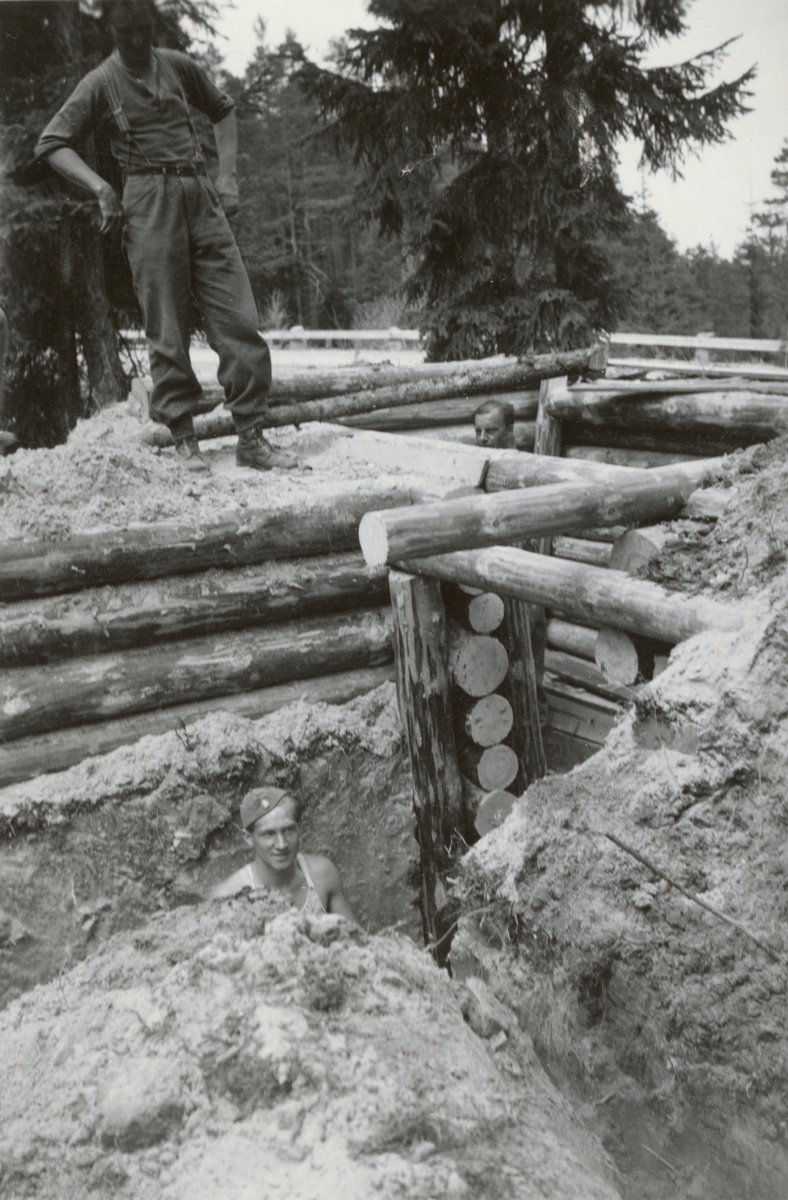 Skyddsrumsbyggnation med soldater från Södermanlands regemente I 10.