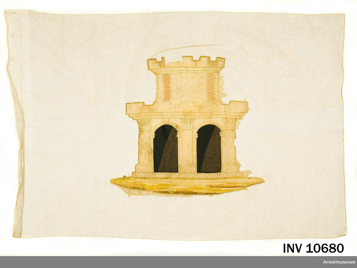 Sledge flag. A sledge flag embroidered with Sir John Barrow's motto ‘HOPE ON HOPE EVER’ made by Lady Jane Franklin for Lieutenant Bedford Pim. It was flown from HM sledge 'John Barrow' commanded by Pim when he made contact with