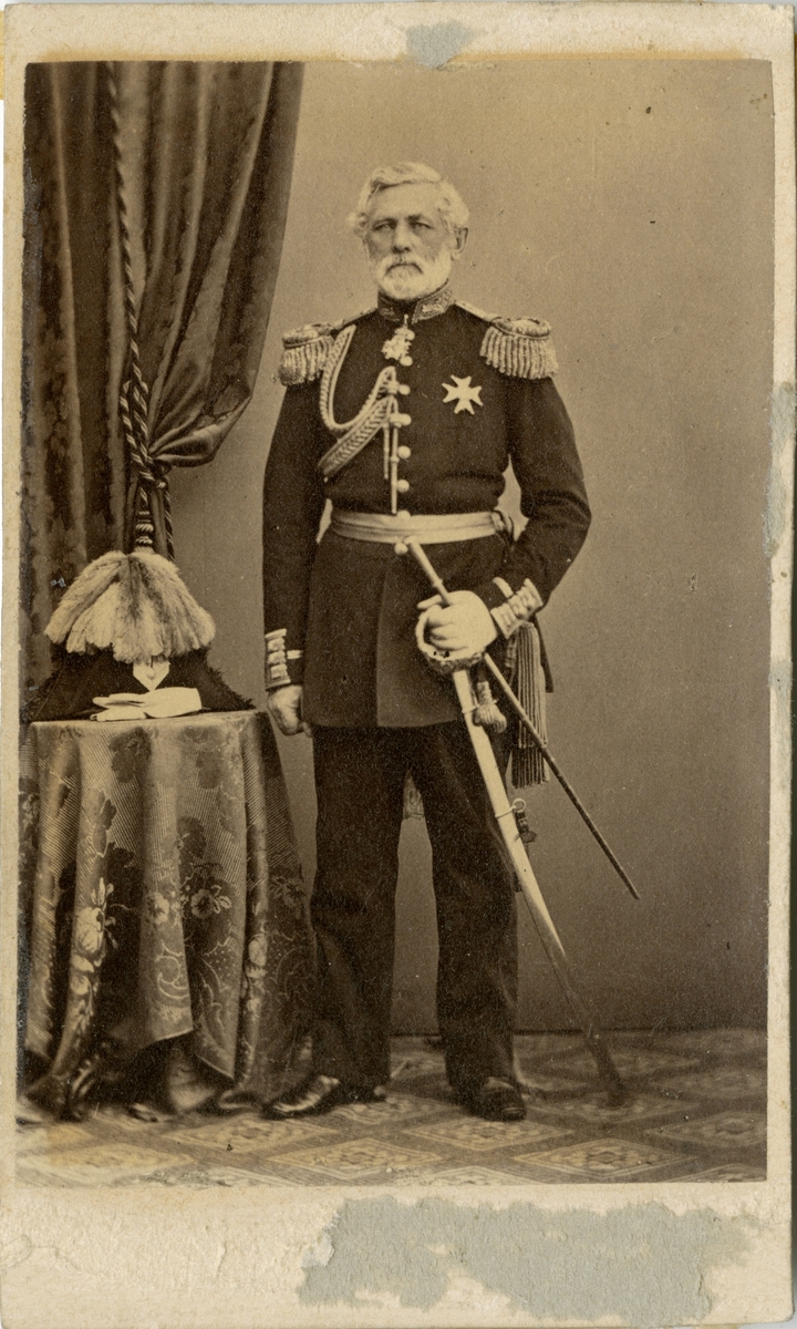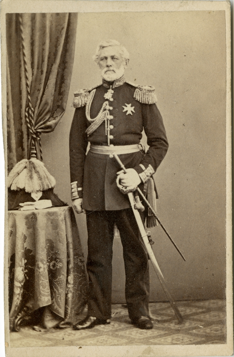 Vice-Admiral James Saumarez (1757-1836). A full-length portrait of James de Saumarez in vice-admiral’s full dress uniform. He wears the ribbons and stars of the Bath and the Swedish Order of the Sword, and the medals of the battles of St Vincent and