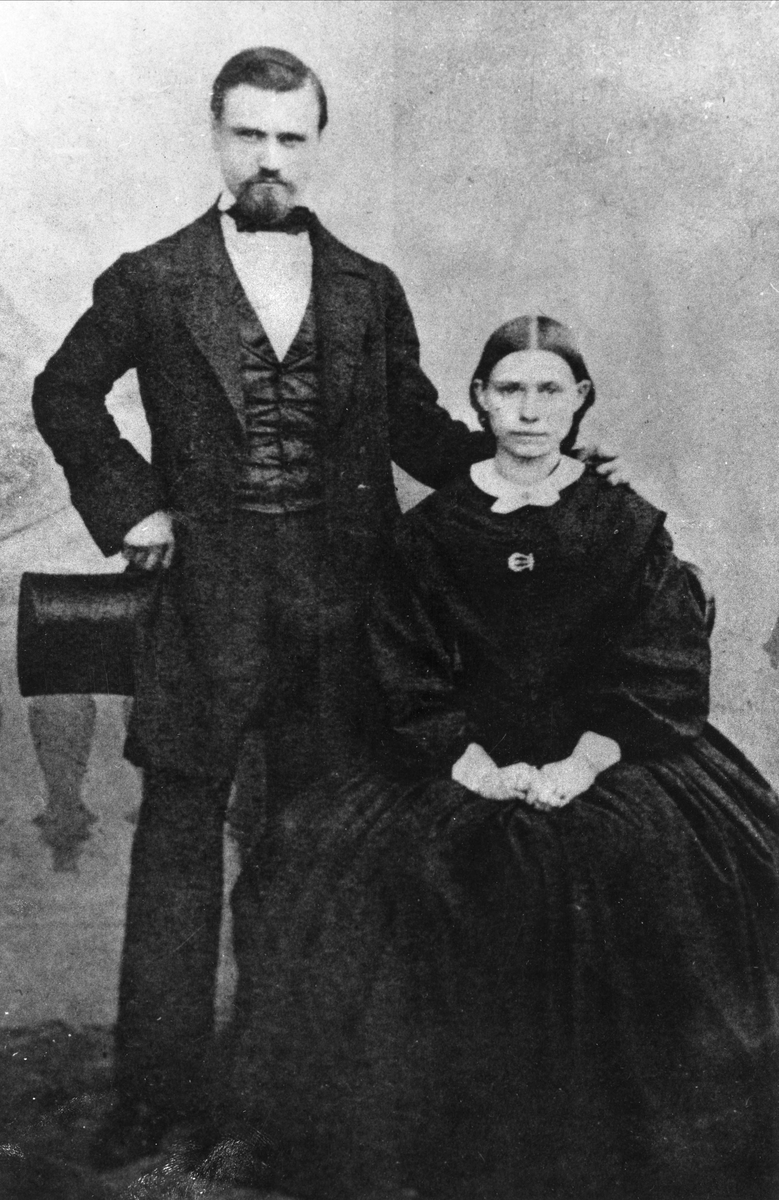 Bröllop, brudpar. Liefabrikör Per August Nordahl och hans fru Carolina (f. Malmberg). Västra Boda, Dalarna.