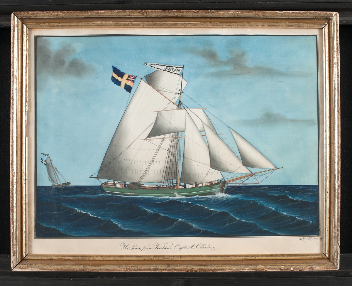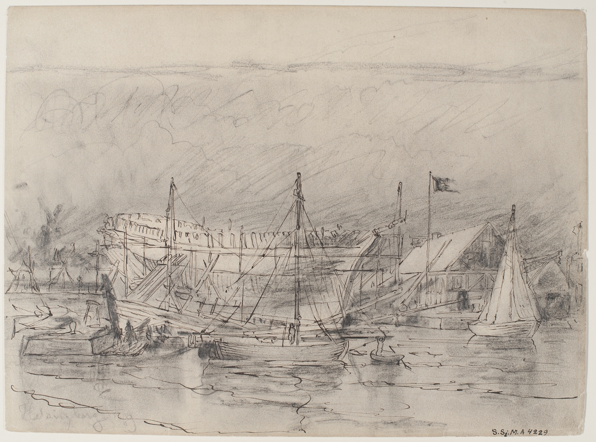 A thick night off the Goodwins. Smythe, a painter of landscape and rustic genre, was the stepbrother of the marine painter William Lionel Wyllie and was twelve years his senior. This is a watercolour version of the painting 'A thick night off the Goo
