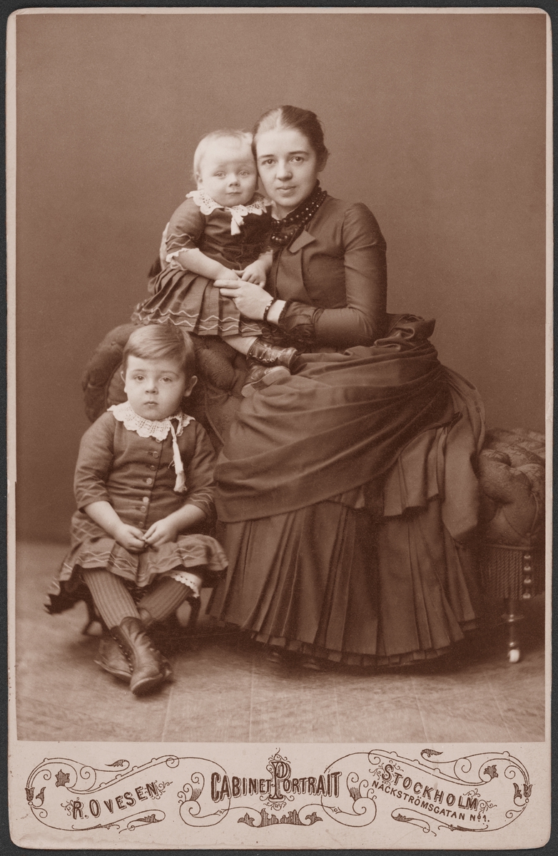 Kabinettsporträtt av kvinna (Henrietta Maria Carlson f. Tempelman f. 7/6 1860 d. 23/6 1950) gift med Fredrik Carlson (1854-1927) med två barn (kapten Arne Carlson f. 20/10 1881 d. 17/9 1921 och musikdirektör Sigrid Carlson f. 9/12 1883 d.
