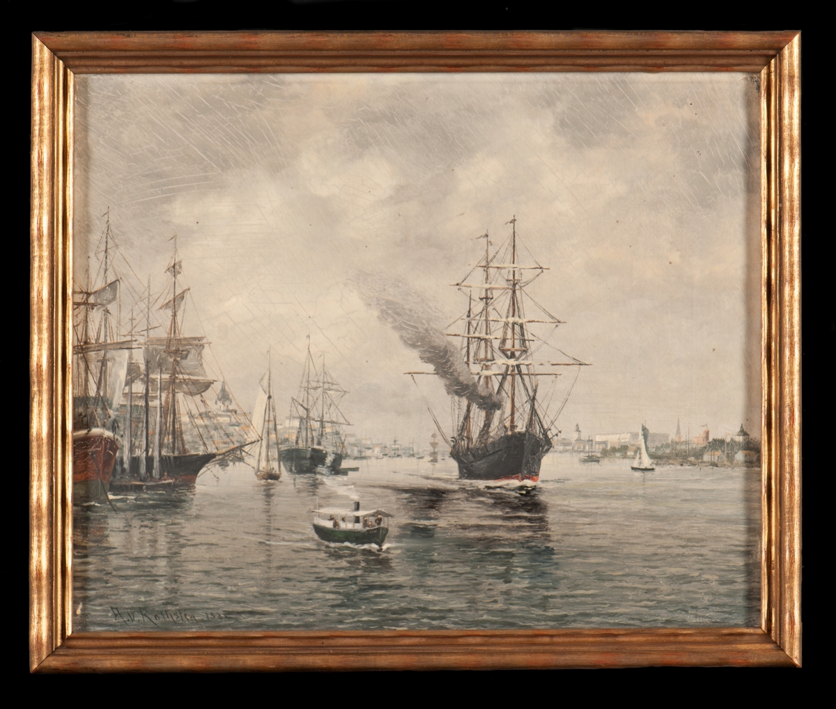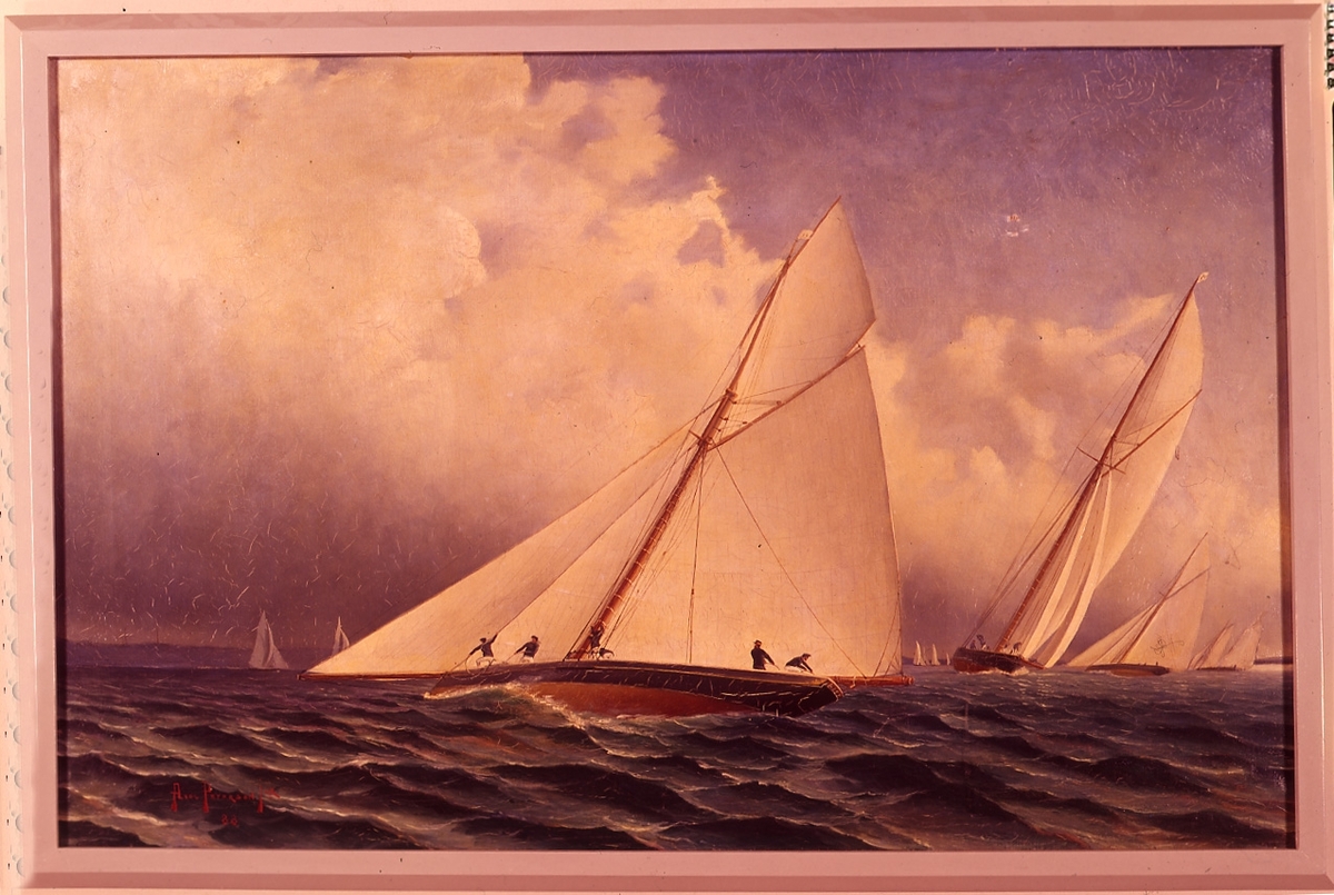 Madge. Plate XV.; Signed by artist in plate. The cutter yacht 'Madge' can be seen in the centre of the painting. It was designed and built for Mr James Coates, a Paisley Thread manufacturer.