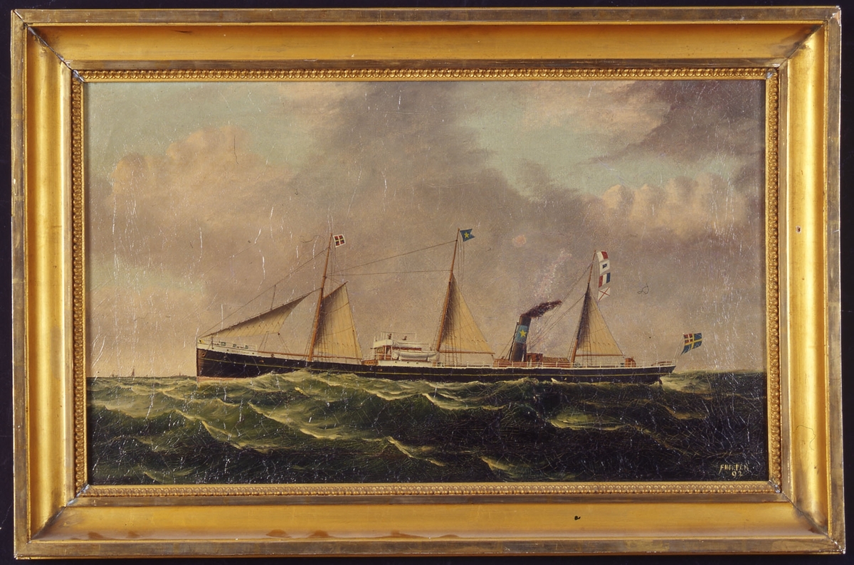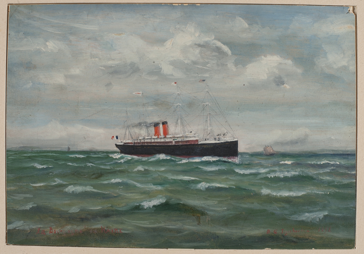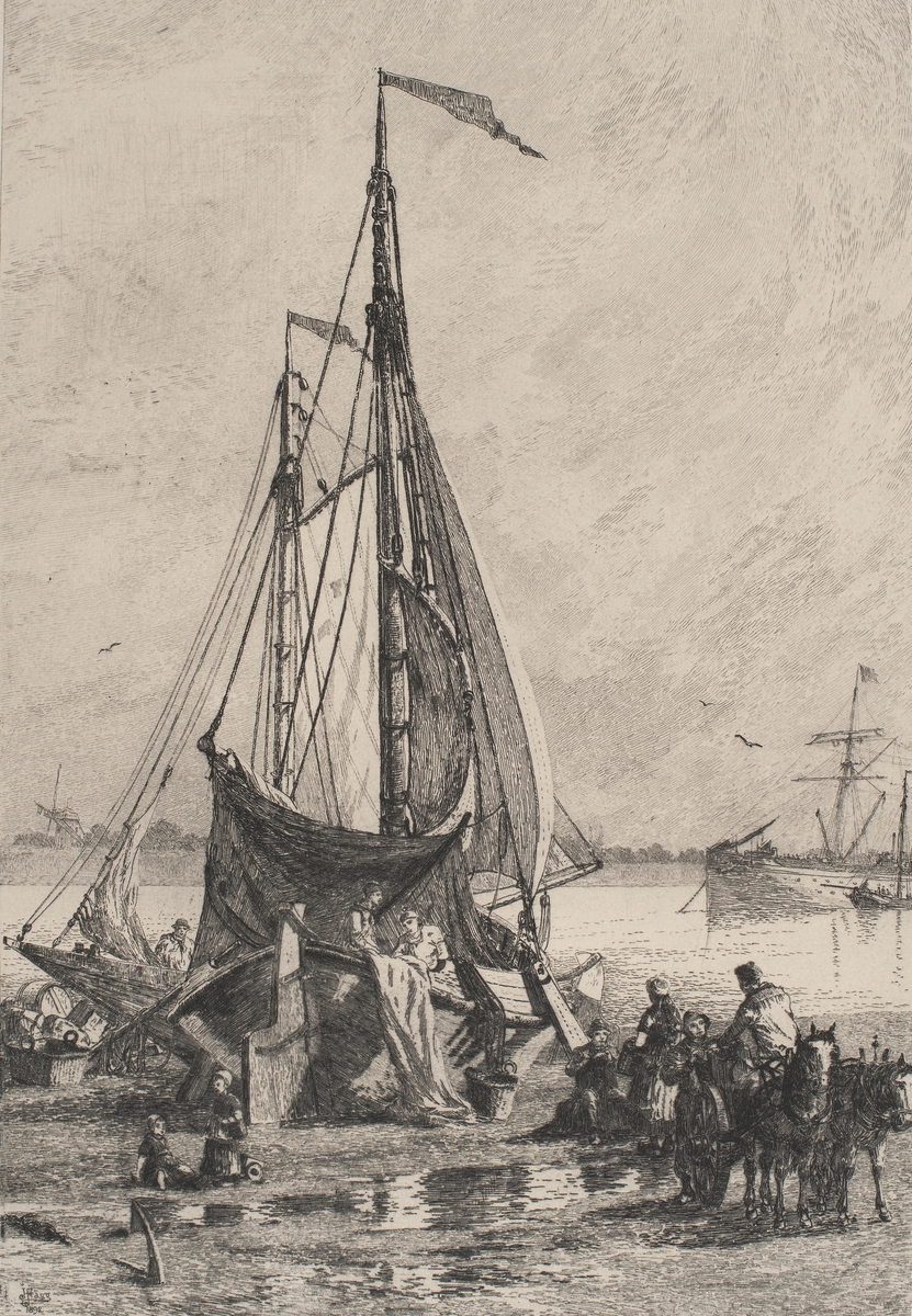 The Lowestoft trawler 'LT356'. A highly detailed ship portrait of a Lowestoft trawler, ‘LT356’, signed and dated 1892. She is shown broadside-on and is towing a small ship’s boat from the stern. Her markings are clearly visible