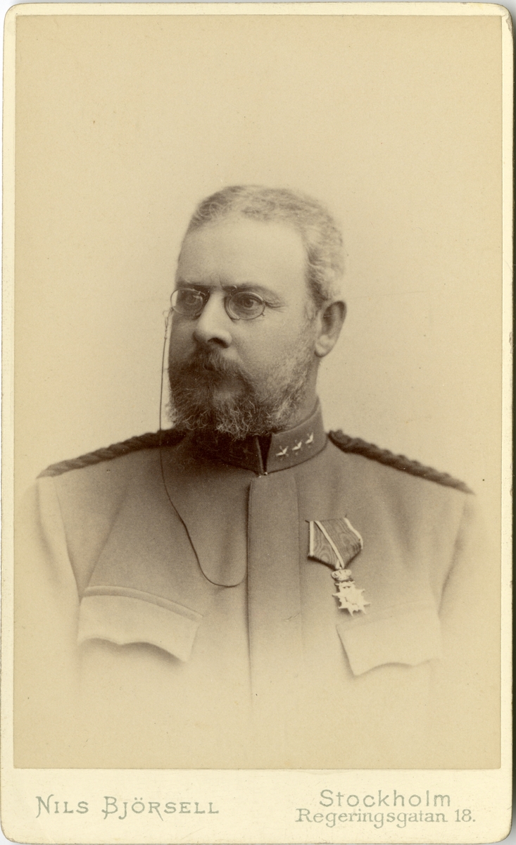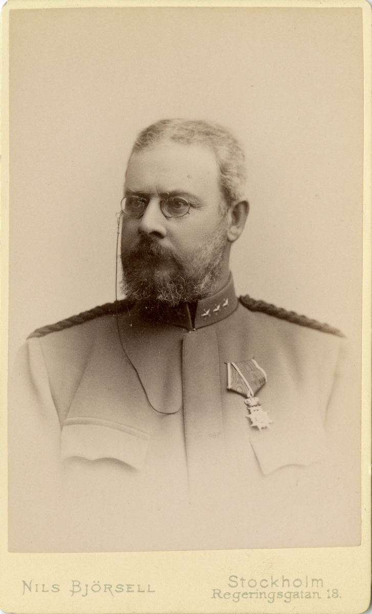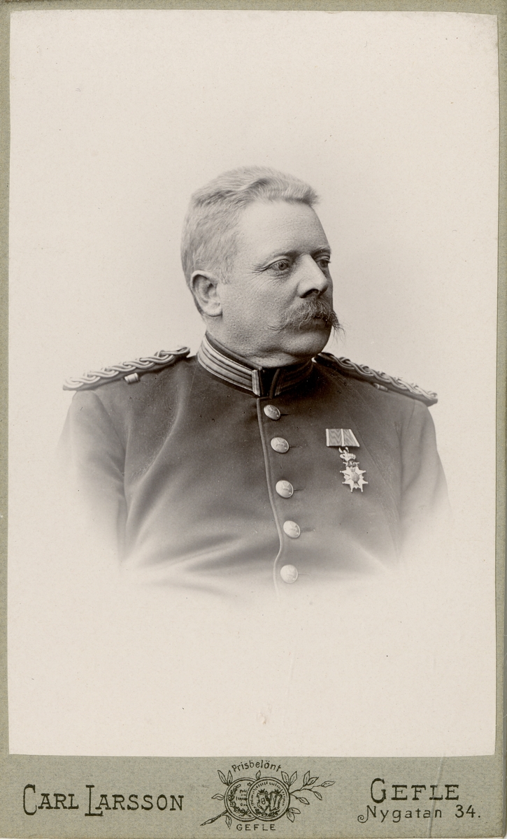 Porträtt av Axel Wilhelm Alarik Gyllencreutz, major vid Fortifikationen. Se även AMA.0007383.