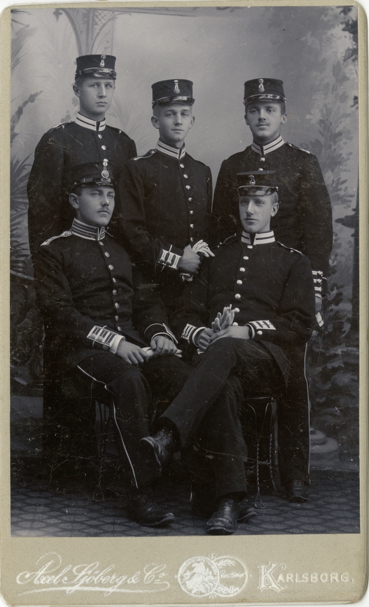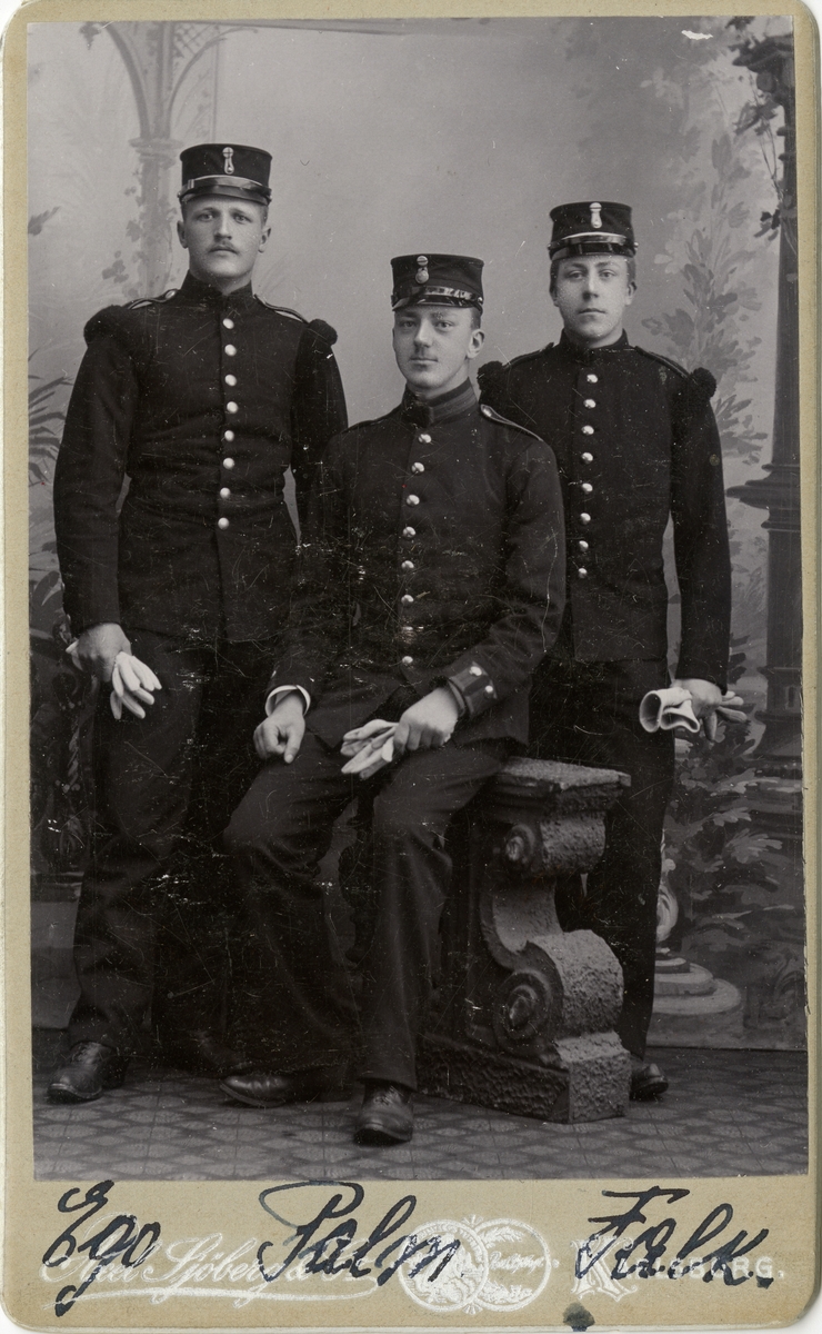 Porträtt av Carl Leonard Setterberg, Hjalmar Falk officerare vid Värmlands fältjägarekår I 26 och Palm.