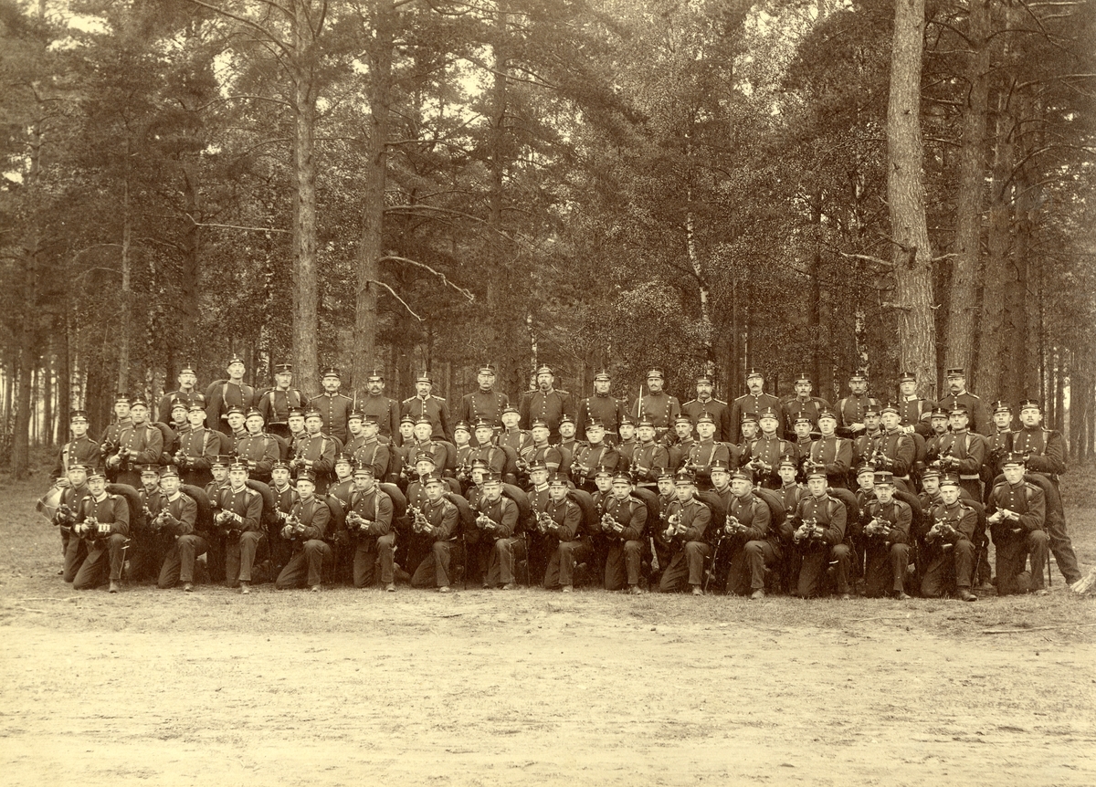 Grupporträtt av daltagarna vid underbefälsskolan på Karlsborg 1894-1896.