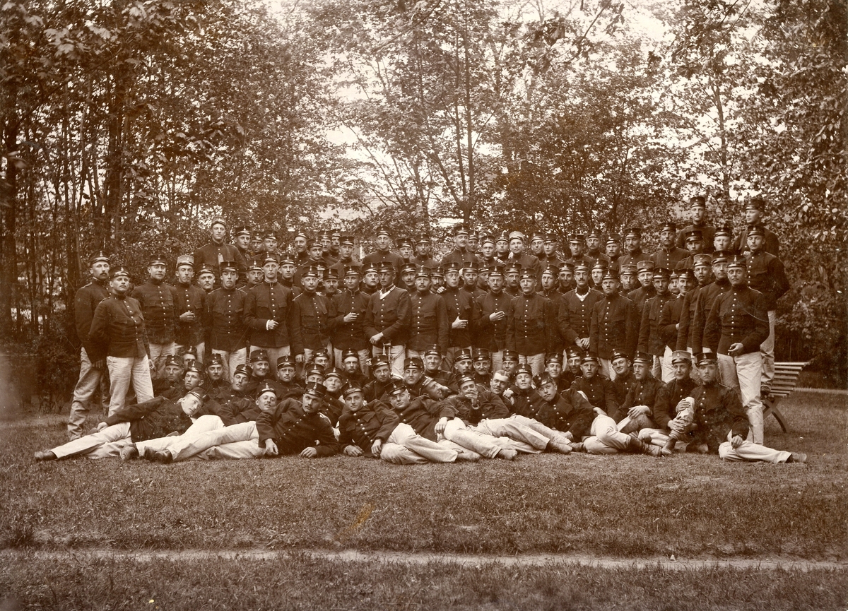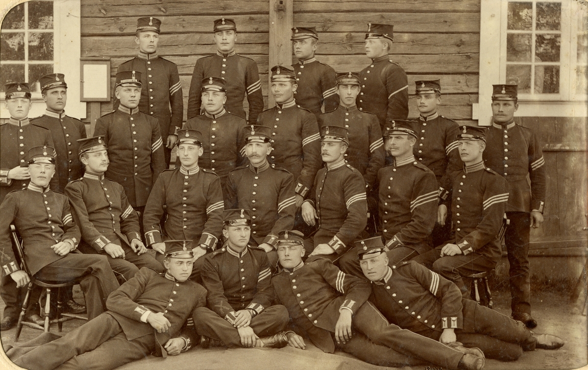 Grupporträtt av deltagarna vid Underbefälsskolan Karlsborg 1894.