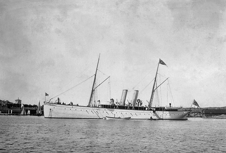 Oscar II:s yacht "Drott" vid södra redden i Marstrand.
