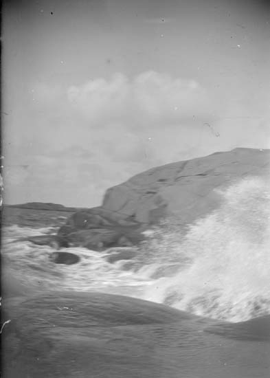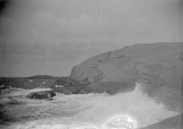 Enligt text som medföljde bilden: "Lysekil. Vid Stångehufud i storm 1898".