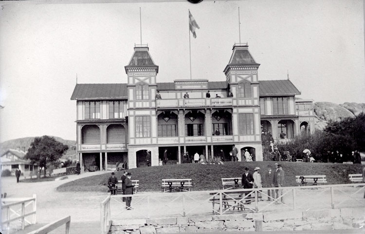 Enligt text som medföljde bilden: "Lysekil. På Lindbergs veranda. (S.O.A) 1898".