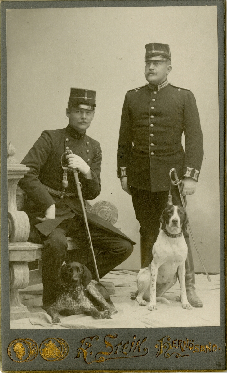 Porträtt av underlöjtnant Carl Wilhelm Isakson (till vänster) och löjtnant Erik Olof Wilhelm Lené (till höger) vid Västernorrlands regemente I 28.
