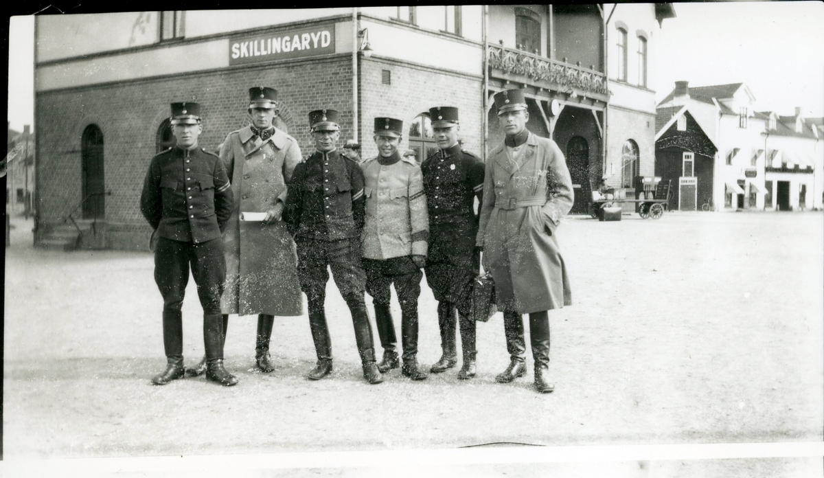 Bodpersonalen står på gården till Niklas Olssons Speceriaffär, Långgatan 2.