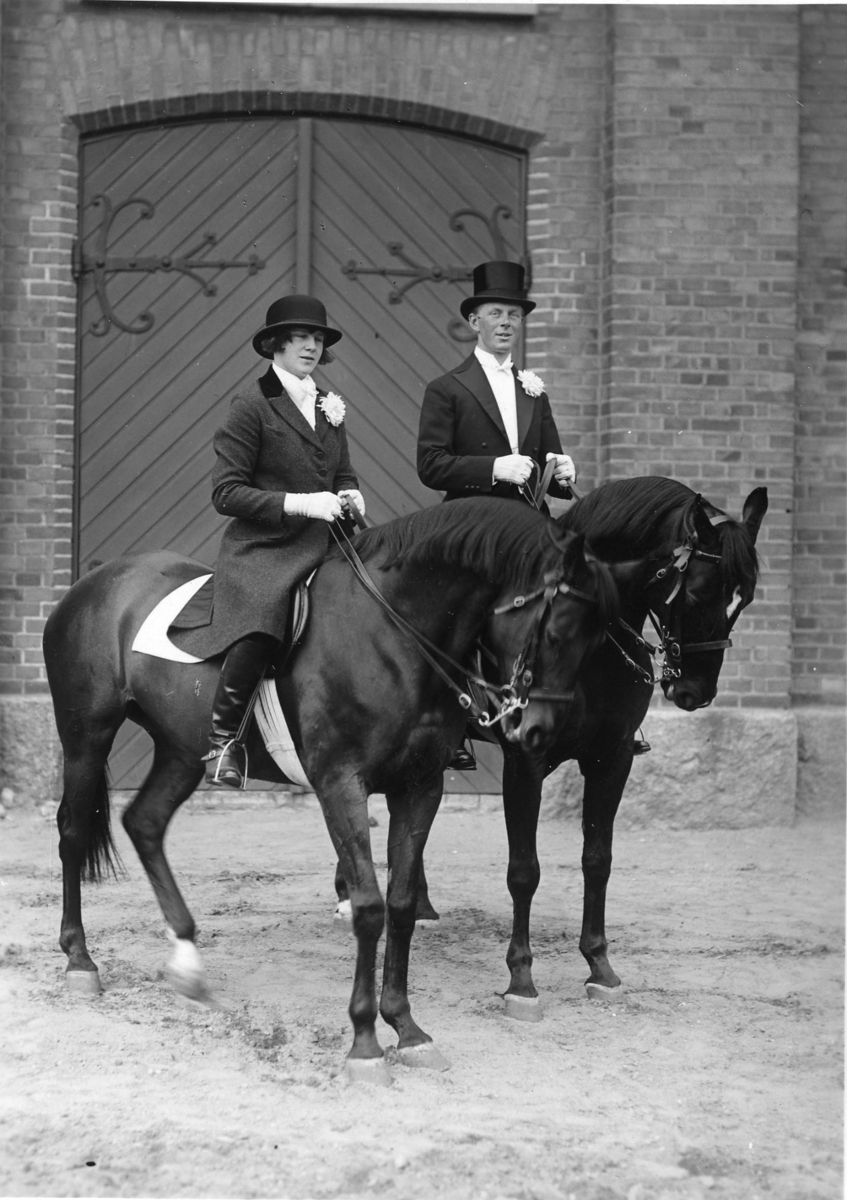 Örebros läns utställning 1928. H M konungen åker från slottet, livhusartropp som eskort.