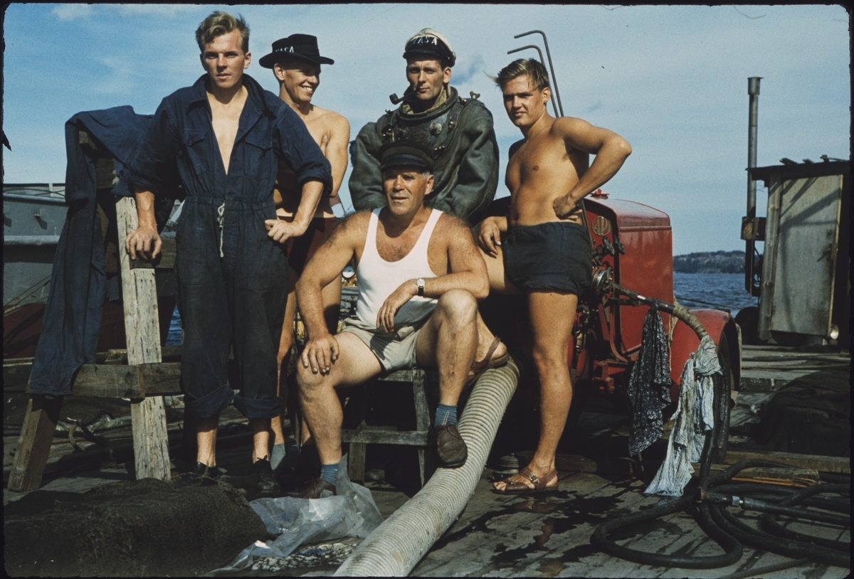 Dykare- fr. v. Jansson, Friberg, förman Fälting,