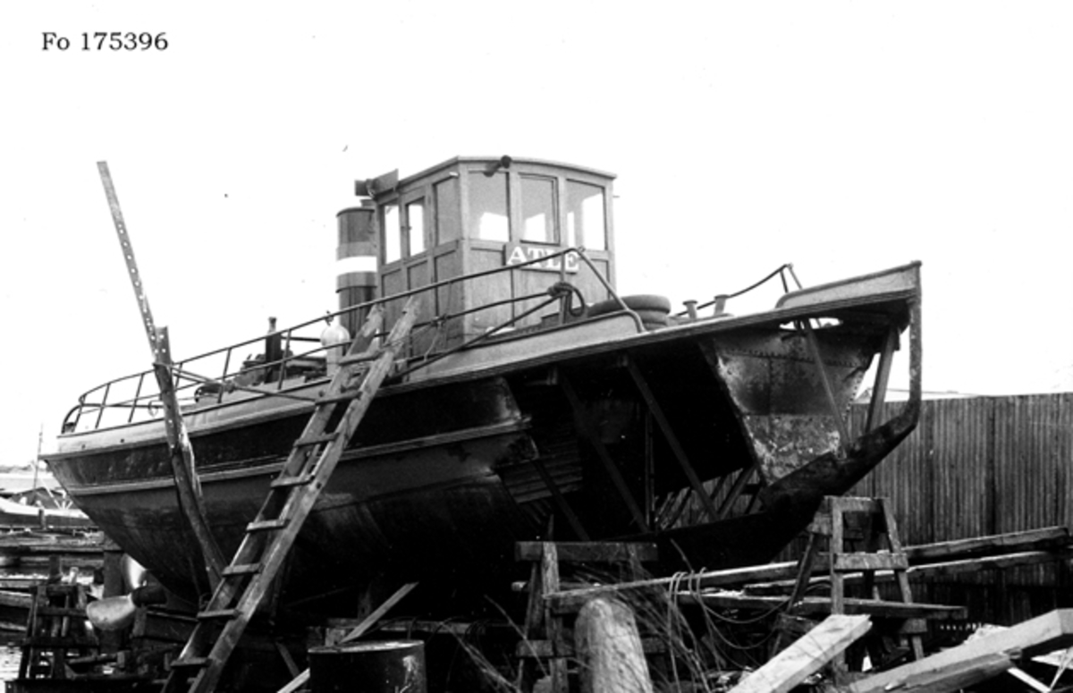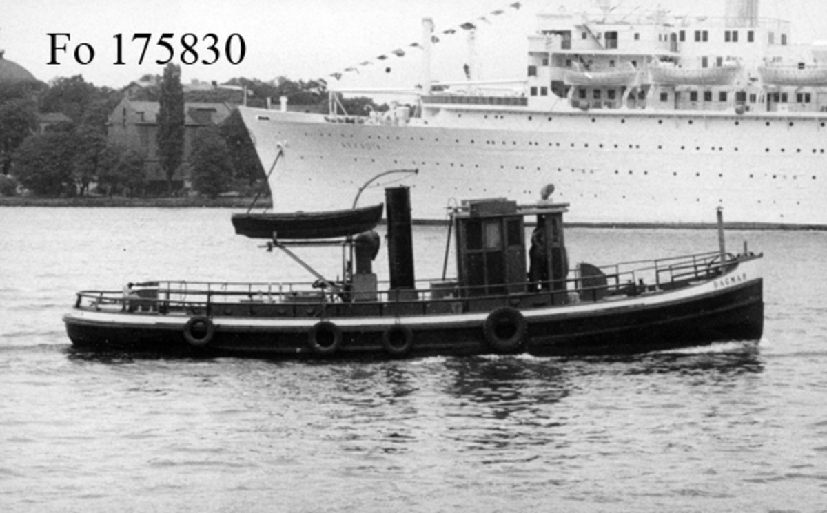Bilden tagen vid Waxholm III:ans bogsering från Högmarsö varv till Vaxholm för att byggas om till café.