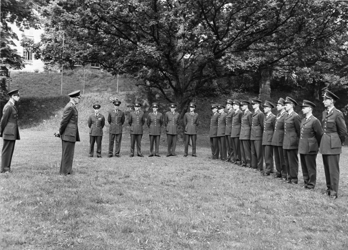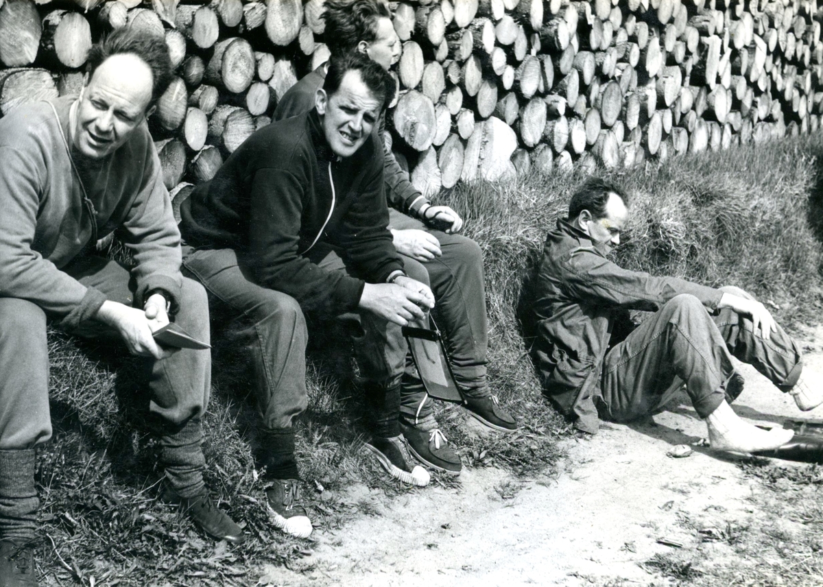 2:a jägarskvadronen KFÖ Strömsholm, klövjade hästar betar i skogsterräng år 1964.