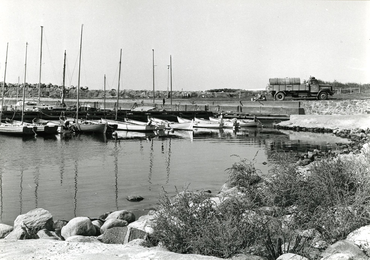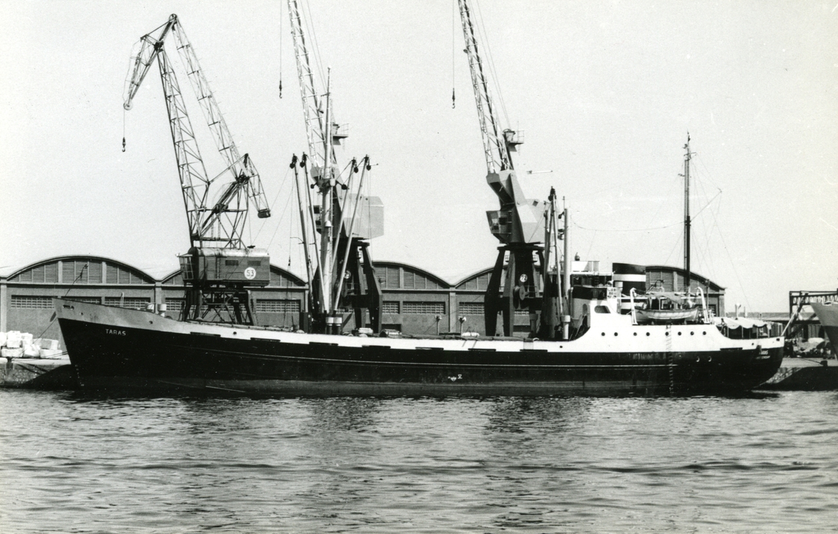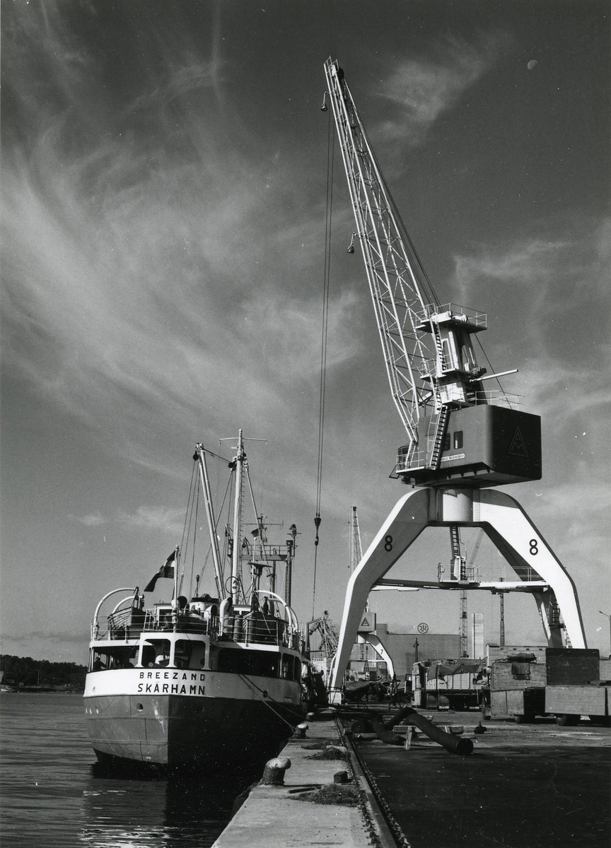 Foto visande tankmotorfartyget "BERGBRITT" av Stockholm, vid kaj i Värtahamnen, Stockholm, 1968.