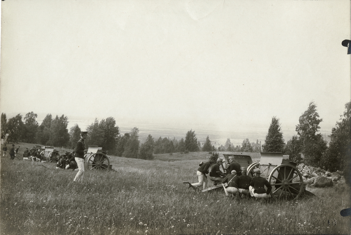 Kadetter vid Krigsskolan Karlberg i skjutövning med kanon.
