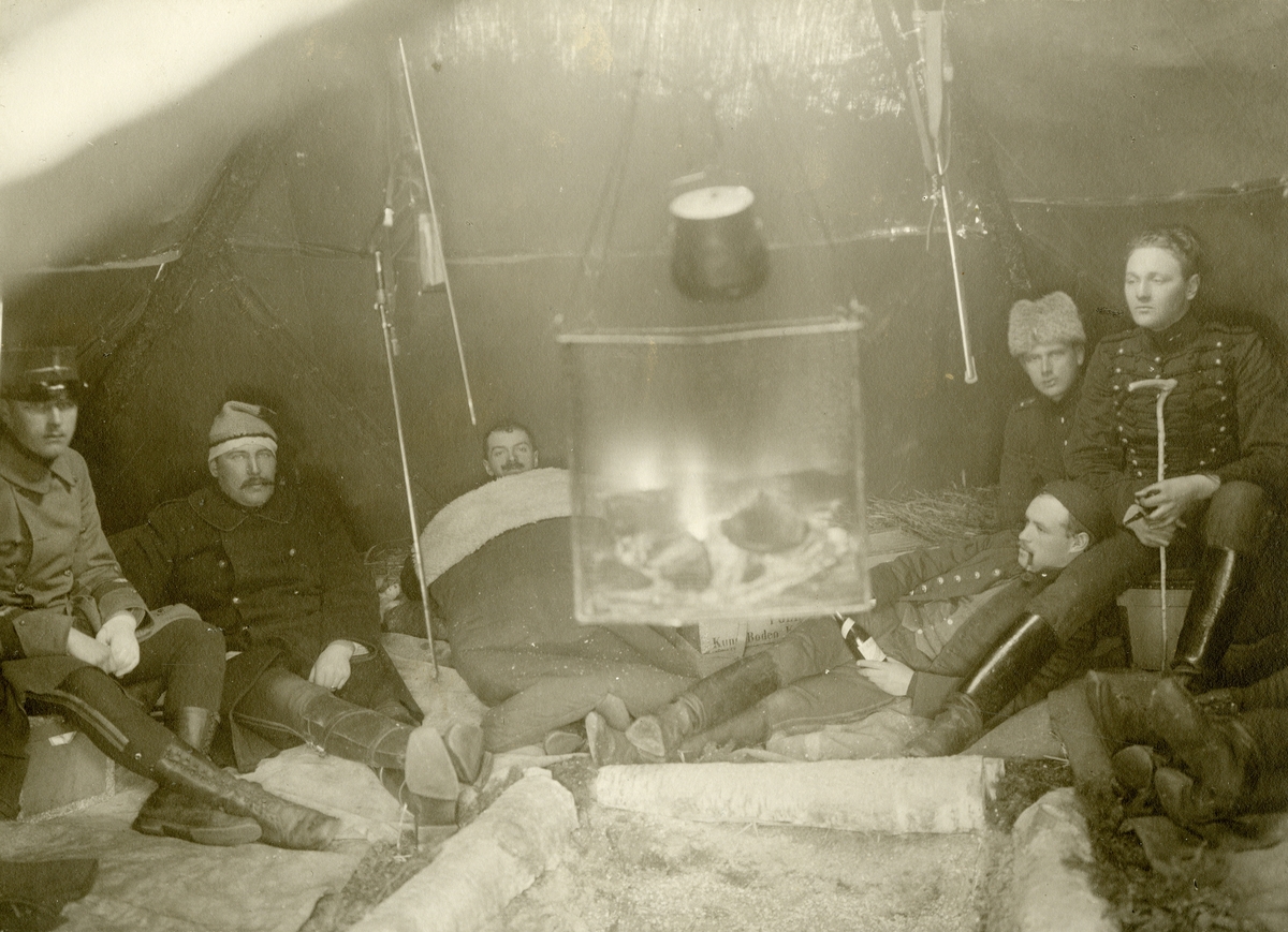 Grupporträtt av soldater vid Svea livgarde I 1 och Positionsartilleriregementet A 9.