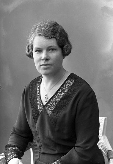 Enligt fotografens journal nr 6 19301943: "Johansson, Fru Alma (Urmakare) Här".