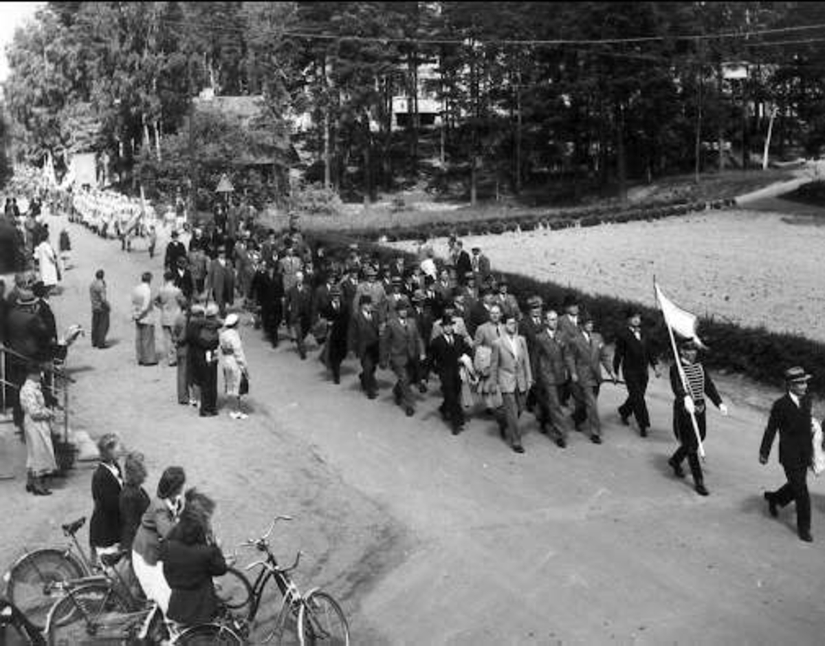 Förbimarsch för H M Gustaf VI Adolf under hans "Eriksgata" i Närke 1953.