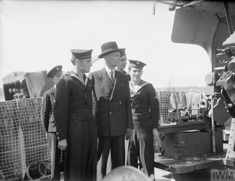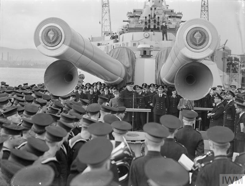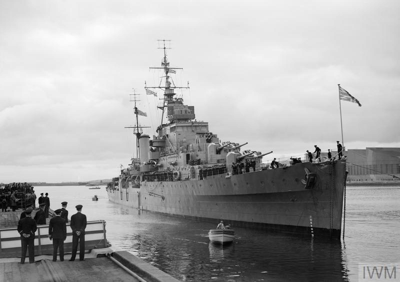 MR CHURCHILL'S RETURN. 20 SEPTEMBER 1943, GREENOCK. HMS RENOWN, THE 23,000 TON BATTLE-CRUISER BROUGHT MR CHURCHILL HOME AFTER HIS LONG STAY IN CANADA AND THE US.