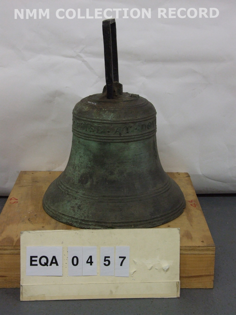 . Bell. Broad arrow on one side, lettering round upper part 'VICTVALING OFFISE AT DOVER 1705'. Remains of canons - rectangular sections without tapering bases. Top moulding wire of two above the inscription is right on the tangent point at the s