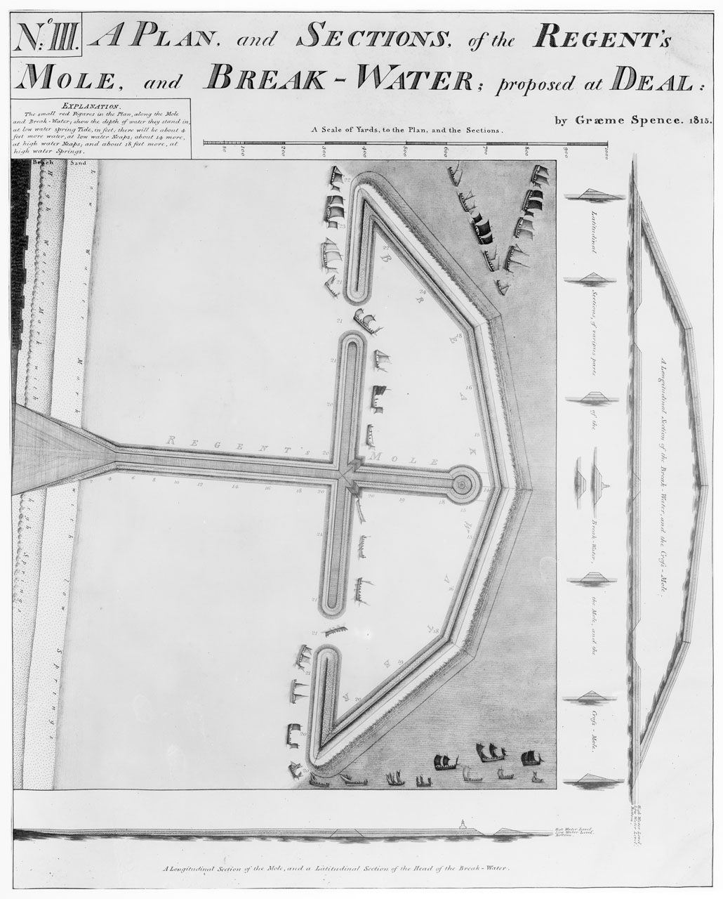 Book of plans showing the Regent's Mole and Breakwater proposed to be constructed at Deal.. Book of plans showing the Regent's Mole and Breakwater proposed to be constructed at Deal, presented to the Lords Commissioners of the Admiralty by Graem