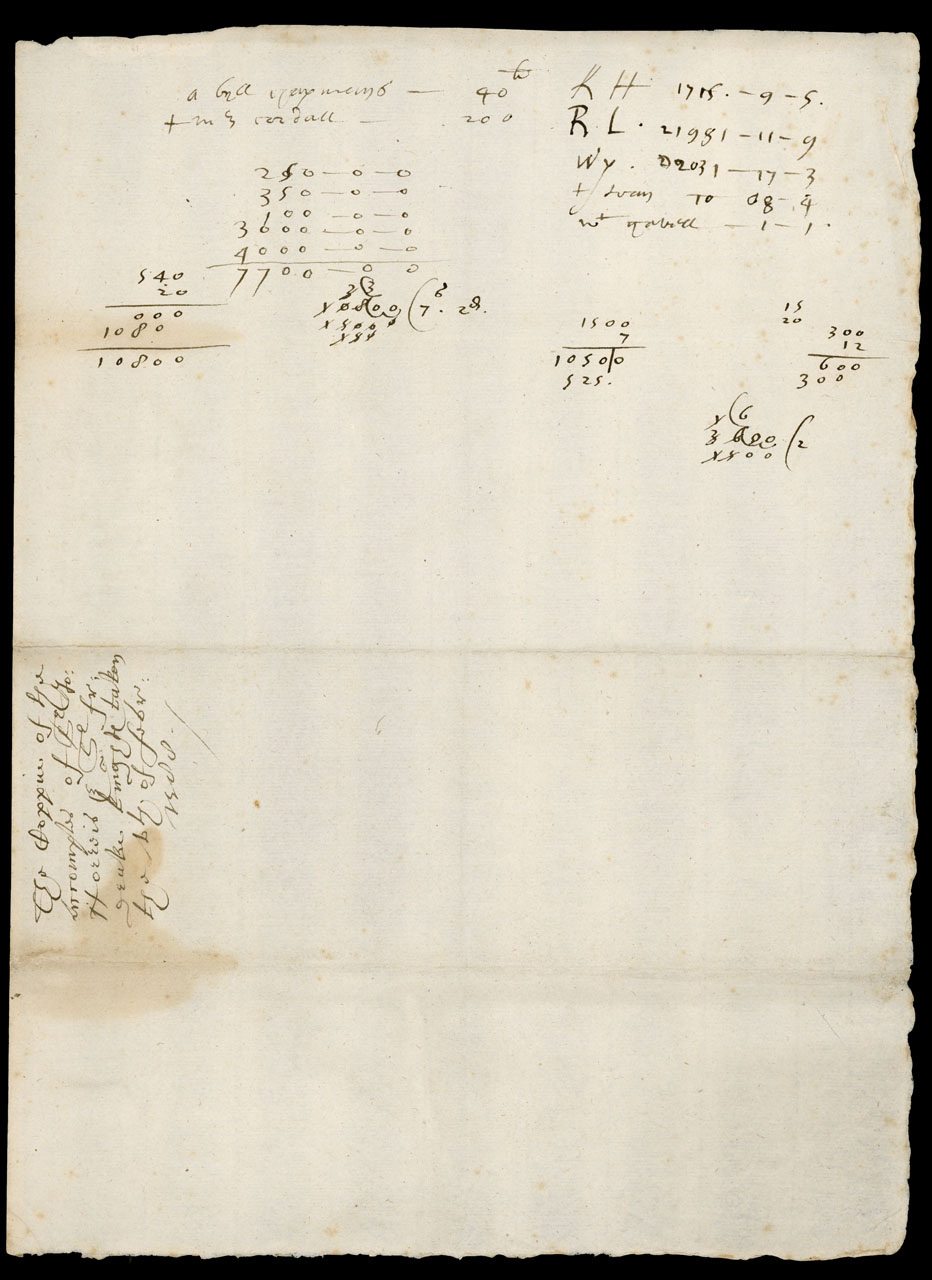 Drake accounts.. 'Monie alreadie paide and putlie of necessitie to be disboursed vpon twoo thirde partes remayning to be furnished for this account by her Majestie and Sir Francis Drake over and above one other thirde.' n.d.
