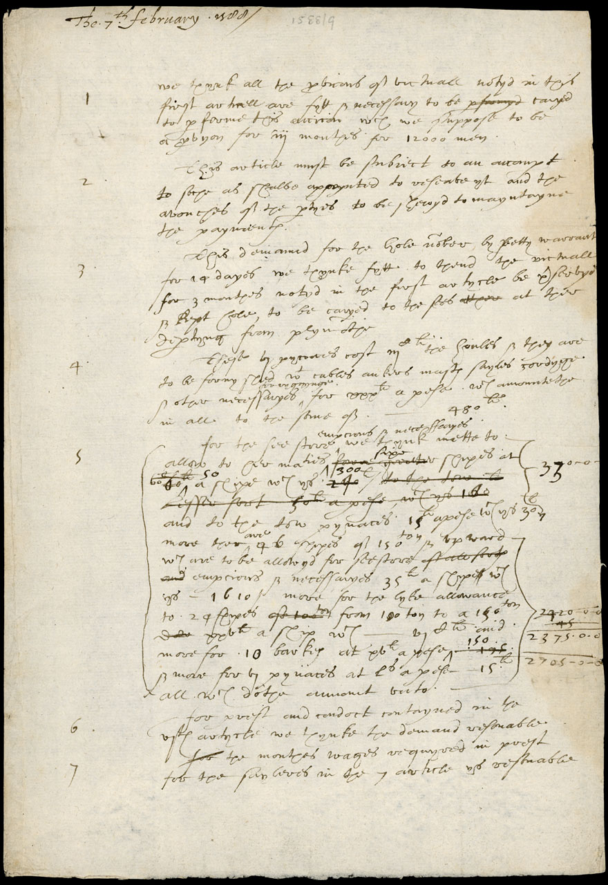 Norris accounts.. A 'breif note taken the vth of Febr 1588 of suche payments as Sr John Norreis and Sr Francis Drake knights showe vnto vu to have made and disboursed for a voyage by them vndertaken.'
